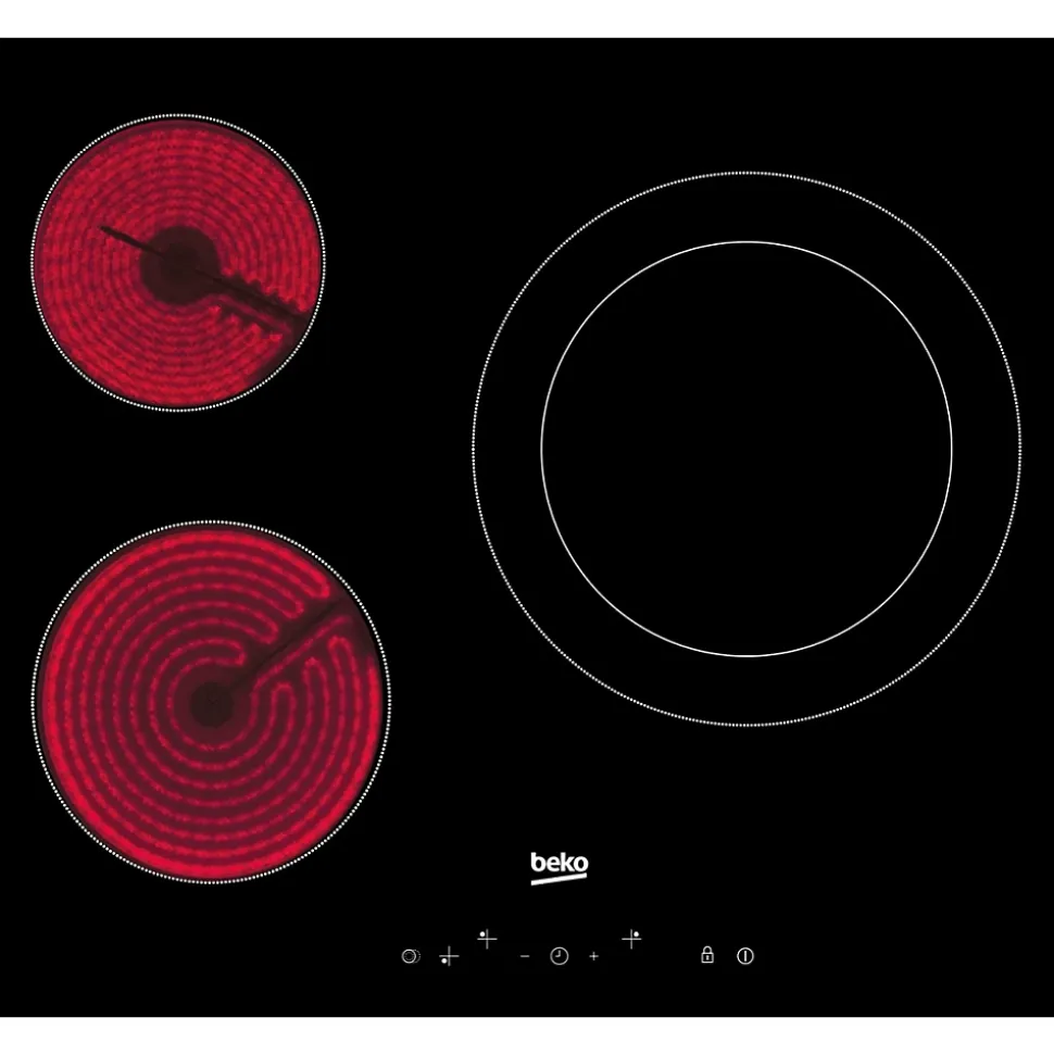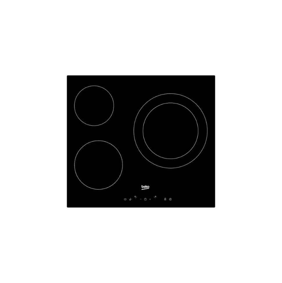 60 cm – Agrandissez votre espace de travail :Une dimension standard qui vous procure un bel espace de travail.Plaques vitrocéramique – Bénéficiez d’une table moderne et performante !Dotée de foyers radiants ou halogènes, la table vitrocéramique est plus performante que la table électrique. Elle chauffe rapidement tout en ayant un design épuré.Commandes sensitives – Des commandes simples :Programmez vos cuissons d’un simple toucher ! Ce bandeau vous permet d’utiliser le minuteur sur l’ensemble des foyers simultanément.Double Ring – Profitez d’une grande modularité :Profitez d’une modularité totale de votre foyer grâce à une double zone extensible.Timer – Respectez les temps de cuisson :Les minuteries vous permettent de programmer une fin de cuisson. Une sonnerie indique la fin de cuisson et le foyer est coupé automatiquement si la surface est encore chaude.Type de table : VerreLargeur en (cm) : 60Type de commandes : Commandes sensitivesType de plaque : VitrocéramiqueNombre de foyers : 3Fréquence (Hz) : 50Couleur : NoirType de commandes : SensitivesNiveaux de puissance : 9Largeur : 58cmHauteur : 3.7cmProfondeur : 51cm