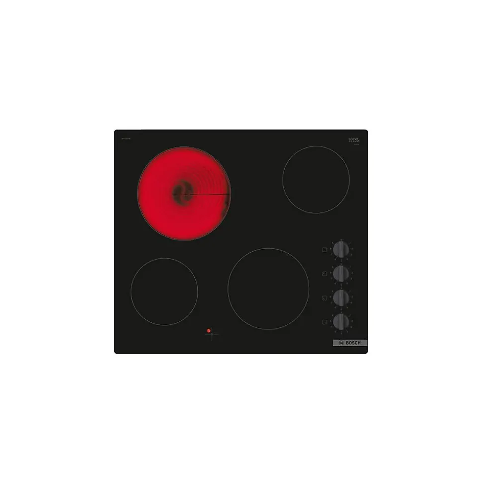 Boutons latéraux : pour un réglage facile de la puissance souhaitée60cm : espace pour 4 casseroles ou poêlesManettes frontales : contrôlez la puissance à l’aide des manettes9 positions de réglage : adaptez précisément la chaleur sur 9 niveaux de puissance4 témoins de chaleur résiduelle : indiquent les zones de cuisson encore chaudesFoyer en vitrocéramiqueType de construction : EncastrableSource d’énergie : ElectricitéNombre de foyers : 4Puissance maximum de raccordement : 6600WNiche d’encastrement : 46 x 56 x 49-50 cmLargeur appareil : 59.2 cmDimensions appareil H x L x P : 4.6 x 59.2 x 52.2 cm