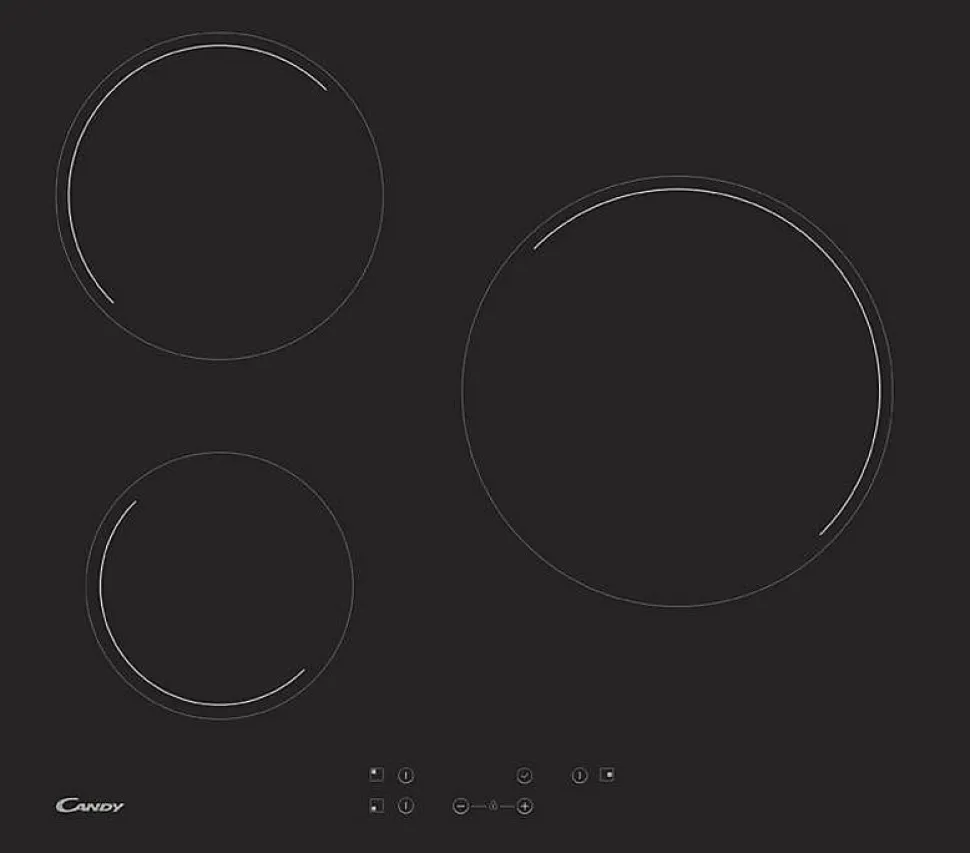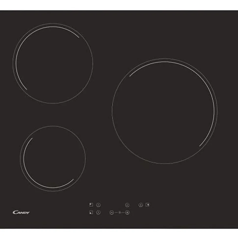 Table de cuisson vitrocéramique 60cm 3 feux 5500w noir Candy – Table de cuisson vitrocéramique Candy CH63CT avec 4 niveaux de sécurité : témoins de chaleur résiduelle, sécurité enfants, sécurité anti-surchauffe et sécurité anti-débordement. – Type de produit : Table vitrocéramique.Type de plaque : Vitrocéramique.Type d’encastrement : A recouvrement plan de travail.Energie : Electricité.Hotte intégrée : Non.Nbre foyer(s) : 3.Touche(s) sensitive(s) : Oui.Type de commande(s) : Tactiles.Position des commandes : Frontale.Zone de cuisson modulable (flex) : Non.Foyer le + puissant (W) : 2 500.Matière de la surface : Vitrocéramique.Couleur : Noir.Connecté : Non.Nbre de positions de cuisson : 10.Minuterie : Oui.Puissance de raccordement (W) : 5500.Tension (V) : 220-240.Fréquence (Hz) : 50/60.Diamètre du + grand foyer (cm) : 25.Largeur (cm) : 60.Bordure : bords droits.Dimensions Hors tout (LxHxP) : 59 x 4,65 x 52 cm.Dimensions Encastrement (LxHxP) : 56 x 5 x 49 cm.Poids net : 7,3 Kg.