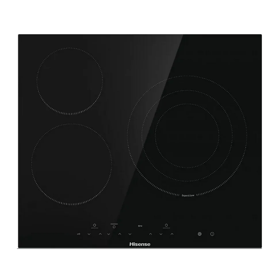 Table de cuisson vitrocéramique 60cm 3 feux 5700w noir Hisense – Table de cuisson vitrocéramique E6332BSCE de HisenseProfitez d’une large zone de cuisson de 29,5 cm pour mijoter de bons petits plats dans des grandes casseroles.Réglez facilement le temps de cuisson grâce au minuteur qui indiquera via un signal sonore quand le repas est prêt !Contrôlez en toute simplicité votre table de cuisson avec le bandeau de commandes facile et intuitif. – Type de produit : Table de cuisson Hi-Light.Type d’appareil : Encastrable.Type de commandes : Touches sensitives.Emplacement du bandeau : À l’avant de la table de cuisson.Matériau de la surface de cuisson : Vitrocéramique.Nombre de foyers : 3.Dimensions foyer avant gauche : 200 mm.Puissance foyer avant gauche : 1800 W.Dimensions foyer arrière gauche : 165 mm.Puissance foyer arrière gauche : 1200 W.Puissance maximale : 5700 W.Alimentation : 220V-240 V / 50/60 Hz.Foyer central droit : Hi-Light à 2 extensions concentriques.Dimensions foyer central droit : 295 mm.Puissance foyer central droit : 1050/1950/2700 W.Minuteur : Oui.Minuteur d’œufs : Oui.Témoin de chaleur résiduelle : Oui.Sécurité enfants : Oui.Couleur : Noir.Dimension du produit (L*P*H, en mm) 590*520*51.Dimension de la niche d’encastrement : (L*P*H en mm) : 560*480*50.Poids (kg) : 7.5 Kg.