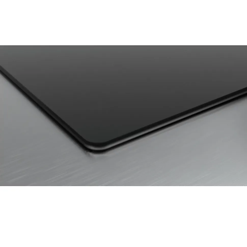Table de cuisson vitrocéramique 60cm 3 feux 5700w noir Siemens – Table de cuisson moderne iQ300 Siemens ET61RBKB8E en vitrocéramique pour plus de plaisir à cuisiner et moins d’efforts de nettoyage. Espace suffisant pour de larges casseroles et faitouts grâce à la double zone de 28 cm. Le bandeau touchControl permet de contrôler très précisément chacune des quatre zones de cuisson. Minuterie avec coupure automatique : la zone de cuisson se coupe automatiquement lorsque le temps de cuisson est écoulé. La sécurité enfants bloque toutes les fonctions, prévenant un allumage accidentel. – Type de produit : Table de cuisson vitrocéramiqueConso. énergétique zone avant gauche (Wh/kg) : 185.Conso. énergétique zone avant droite (Wh/kg) : 190.2.Conso. énergétique zone arrière droite (Wh/kg) : 188.8.Gamme : iQ300.Type de plaque : Vitrocéramique.Type de foyers : Induction et vitrocéramique.Type d’encastrement : A recouvrement de plan de travail.Energie : Electricité.Hotte intégrée : Non.Nbre foyer(s) : 3.Touche(s) sensitive(s) : Oui.Type de commande(s) : Tactiles.Position des commandes : Frontale.Zone de cuisson modulable (flex) : Oui.Double(s) zone(s) : Oui.Nbre de double(s) zone(s) : 1.Foyer le + puissant (W) : 2 000.Puissance totale max : 5 200.Matière de la surface : Vitrocéamique.Type de cadre : Sans cadre.Couleur : Noir.Finition / Nuance : Verre.Connecté : Non.Nbre de positions de cuisson : 17.Minuterie : Oui ( avec coupure automatique ).Autre(s) fonction(s) : Fonction restart, fonction quickStop.Sécurité gaz : Oui.Témoin(s) de chaleur résiduelle : Oui.Verrouillage des commandes / Sécurité enfant : Oui.Anti-surchauffe : Oui.Autre(s) sécurité(s) : Témoin lumineux de fonctionnement.Puissance de raccordement (W) : 5700.Longueur du cordon (m) : 1.Diamètre du + grand foyer (cm) : 27.5.Hauteur (cm) :