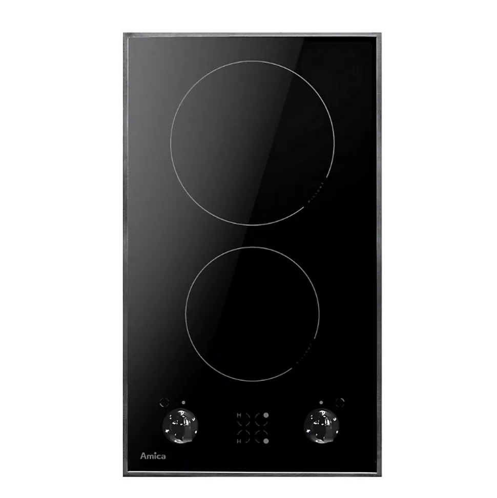 Table domino vitrocéramique 30cm 2 feux noir Amica – Table domino vitrocéramique PH3200PG d’AmicaLa plaque de cuisson en vitrocéramique intégrée Amica PH3200PG se distingue par sa surface noire élégante. Avec deux zones de cuisson, elle offre des possibilités de cuisson polyvalentes pour différents plats. Le contrôle se fait via des boutons rotatifs pratiques, permettant un ajustement simple et précis de la température. Avec une puissance totale de 3000 watts, la plaque de cuisson est puissante et efficace, idéale pour préparer des repas en un temps record. Sa conception compacte, avec une largeur de 290 mm et une profondeur de 510 mm, en fait un choix idéal pour les cuisines modernes où l’optimisation de l’espace est importante. La plaque de cuisson allie fonctionnalité et design attrayant, ce qui en fait un excellent complément à tout environnement de cuisine.Design intégré pour une esthétique de cuisine harmonieuse.Deux zones de cuisson pour des possibilités de cuisson flexibles.Contrôle facile grâce aux boutons rotatifs.Surface en céramique de haute qualité pour un nettoyage facile. – Type de produit : Domino vitrocéramique.Type d’installation : Encastrable.Type de commande(s) : Manettes.Emplacement des commandes : Frontales.Zone de cuisson modulable (flex) : Non.Nbre foyer(s) : 2.Foyer le + puissant (W) : 1800.Puissance de raccordement (W) : 3000.Nbre de positions de cuisson : 9.Hotte intégrée : Non.Connecté : Non.Booster(s) : Non.Matière de la surface : Vitrocéramique.Témoin(s) de chaleur résiduelle : Oui.Couleur : Noir.Hauteur (cm) : 6.3.Largeur (cm) : 30.Profondeur (cm) : 50.5.Encastrement H x L x P (cm) : 28.5 x 49.Poids (kg) : 4.7.