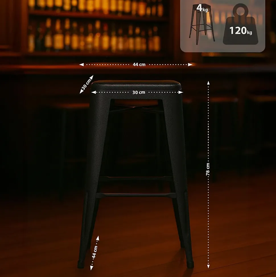 Tabouret de bar EtowahLe tabouret de bar Etowah allie un design industriel urbain à une fonctionnalité bien pensée, parfaite pour la maison, la gastronomie et les événements.La structure métallique perforée garantit la robustesse pour un poids propre de seulement quatre kilogrammes et une capacité de charge allant jusqu’à 120 kilogrammes. Avec une hauteur d’assise de 78 centimètres, il s’adapte parfaitement aux comptoirs et aux tables hautes. Des protections de sol antidérapantes protègent les sols sensibles et assurent une bonne stabilité.Le repose-pieds intégré augmente le confort d’assise, tandis que le design empilable permet un gain de place maximal. Grâce à sa surface facile d’entretien, le tabouret Etowah se nettoie rapidement et conserve sa finition stylée.Détails:Largeur totale : 44 cmHauteur totale : 78 cmProfondeur totale : 44 cmHauteur d’assise : 78 cmAssise (l x p) : 30 x 30 cmMax. Capacité de charge : 120 kgPoids : 4 kgPiétement:Matériau : métal perforéProtections de sol inclusesAvec repose-piedsConseils d’entretien:Pour le nettoyage, nous recommandons un chiffon en coton humidifié avec de l’eau tiède.