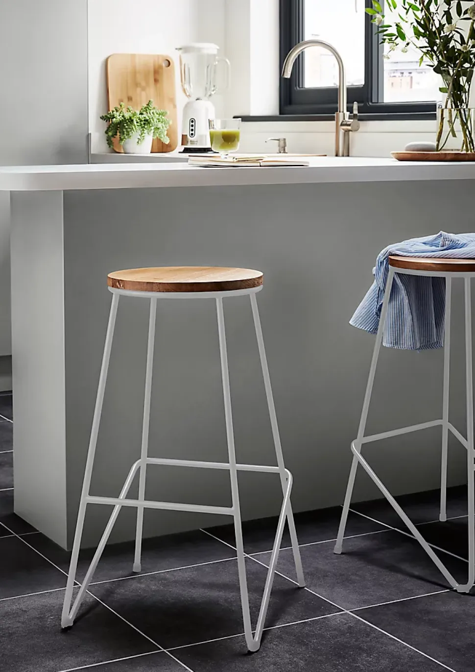 Tabouret de bar GoodHome Maloux blanc