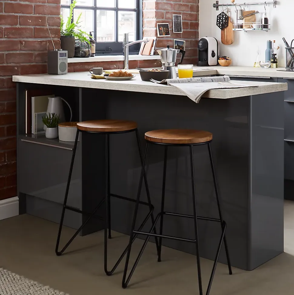 Ce tabouret de bar GoodHome est idéal pour votre plan de travail snack ou îlot. Son design contemporain et son assise en chêne massif robuste ajouteront une touche d’élégance à votre cuisine.