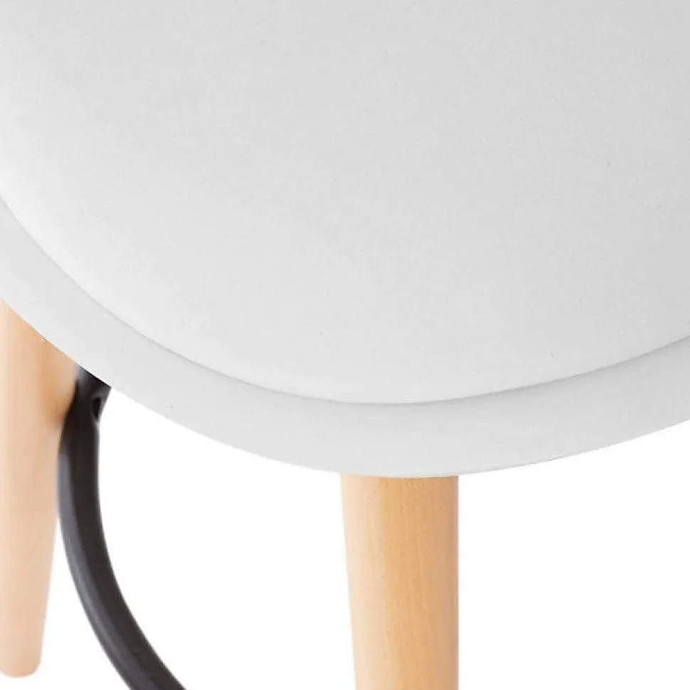 Tabouret de bar confortable Assise Blanche et Pieds en Bois H 92 cm – Dimensions : L. 42,5 x l. 39,5 x H. 92 cm – Hauteur d’assise : H. 71,5 cm – Repose-pieds : H. 30 cm – Matière des pieds : Bois de Hêtre – Matière du repose-pieds : Fer – Matière de la structure assise : Polypropylène – Matière du rembourrage coussin : Mousse Polyuréthane (PU) – Matière du revêtement coussin : Polyuréthane – Poids : 4,5 kg