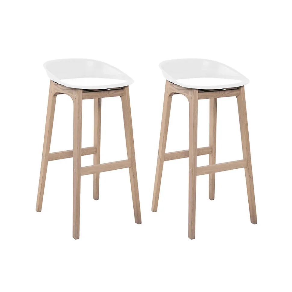 Tabouret en plastique blanc et pieds en bois Homesight Riva 75 cm, 2 pièces