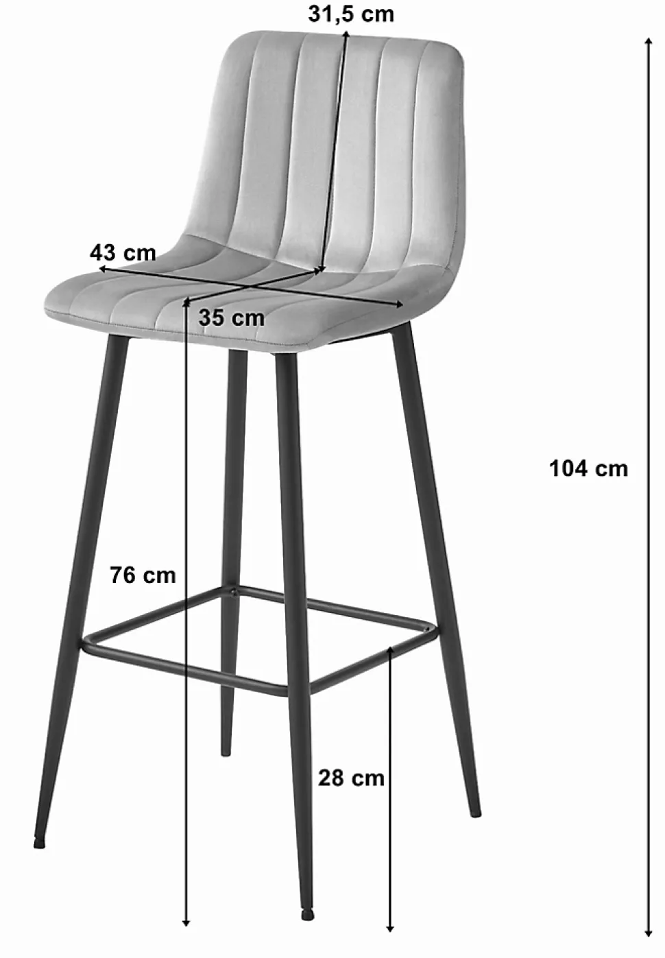 Le tabouret Valora Pozza en velours noir avec pieds en acier est idéal pour les cuisines et les bars modernes. Son design élégant et sa hauteur d’assise de 76 cm offrent un confort optimal et supportent jusqu’à 110 kg. Facile à monter, c’est un choix polyvalent et raffiné pour tous les espaces.- Nom du produit : Tabouret VALORA POZZA – Couleur : Noir – Matériau de l’assise : Velours – Matériau des pieds : Acier noir – Hauteur totale : 104 cm – Hauteur d’assise : 76 cm – Largeur d’assise : 43 cm – Profondeur d’assise : 35 cm – Poids du tabouret : 5,5 kg – Charge maximale : 110 kg – Dimensions de l’emballage : 60 x 60 x 55 cm – Poids de l’emballage : 12,3 kg – Contenu de l’emballage : 2 tabourets – Montage : Facile à monter – Marque : Valora, une marque européenne de confiance – Design : Sophistiqué, élégant, intemporel et ergonomique – Utilisation : Cuisine moderne ou coin bar – Structure : Durable et polyvalent