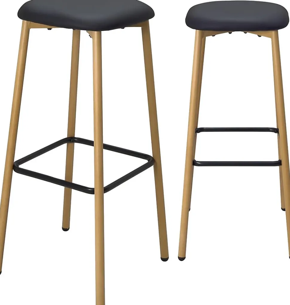 Découvrez le lot de 2 tabourets de bar NES de Kayelles, une solution élégante et fonctionnelle pour votre intérieur. Avec une hauteur totale de 78 cm, ces tabourets sans dossier optimisent l’espace tout en offrant un confort optimal grâce à leur assise rembourrée en mousse haute densité. L’assise de 36 x 36 cm, habillée en PU noir, allie style contemporain et facilité d’entretien. Le piètement en métal avec finition imitation bois de hêtre apporte une touche naturelle et chaleureuse à l’ensemble. Chaque tabouret est doté de patins plastiques noirs réglables qui protègent efficacement vos sols. Avec leurs dimensions compactes de 39 cm de largeur et 37 cm de profondeur, ces tabourets s’intègrent parfaitement dans tous les espaces, que ce soit autour d’un îlot de cuisine, d’un bar ou d’une table haute. Leur design épuré et leur style polyvalent en font un choix idéal pour les intérieurs contemporains, scandinaves ou minimalistes.Matières:assise habillage en PU, rembourrée en mousse haute densité neuvepiètement metal transfert immitation Bois de Hetre – diamètre : 26 mmpatins noir plastique réglables et anti rayures (Protège vos sols)Fiche Technique : dimensions hors tout : 39 (L) x 37 (P) x 78 (H) cmhauteur totale : 78 cmhauteur d’assise : +/- 78 cmassise : 36 (L) x 36 (P) cm – épaisseur +/- 4 cmpied : 39 (L) x 37 (P) cmcolisage : livré en 1 colis de 78 (L) x 56 (P) x 13 (H) cmnombre de pièces par carton : 2poids brut : 8.40 kgpoids net d’une chaise : 3.50 kgMontage :Facile / Une personne. A assembler suivant les instructions jointes au colis.Entretien :En cas de tâche, chiffon humide, possibilité d’ajouter une légère pointe de savon.Ne pas utiliser de détergents ou matières abrasives.