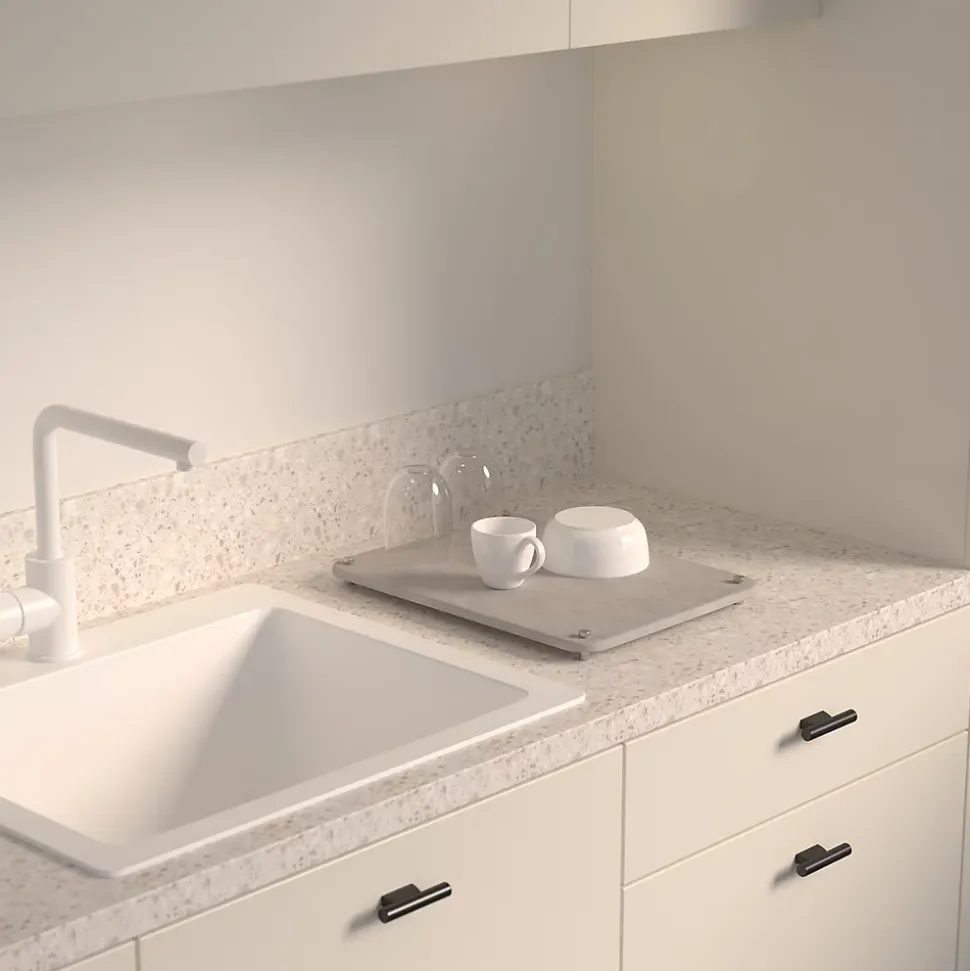 Kitchenette K17 – 140 cm – Façades : Gris – Plan de travail : Noir – Crédences : Non – Evier