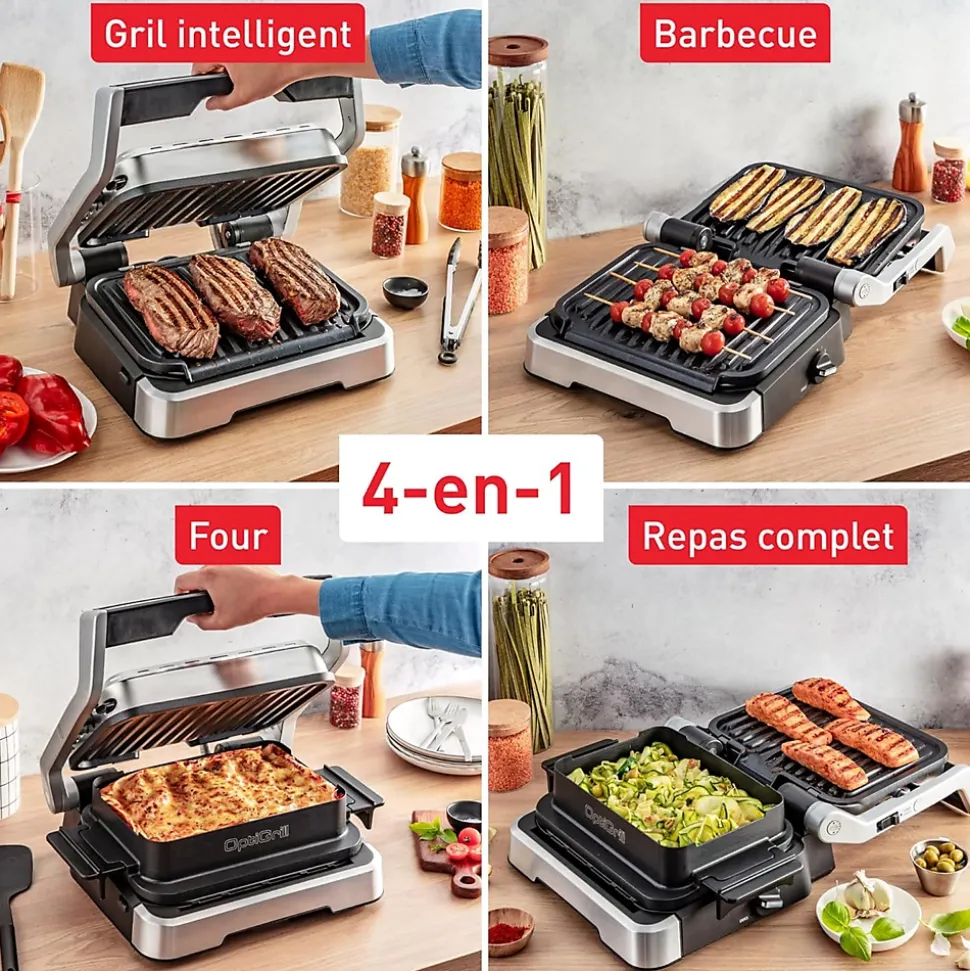 Le Tefal OptiGrill garantit des grillades parfaites, de saignantes à bien cuites, grâce à sa technologie intelligente qui mesure l’épaisseur des aliments et ajuste automatiquement le temps de cuisson. Son anneau lumineux indique clairement le niveau de cuisson, sans besoin de surveillance. Doté de 9 programmes automatiques pour viandes, poissons et légumes, il offre une polyvalence 4-en-1 : grill, barbecue, four et appareil de cuisson complet. Ses plaques antiadhésives et son bac récupérateur de graisse compatibles lave-vaisselle assurent un nettoyage facile. Réparable 15 ans au juste prix, il allie performance, praticité et durabilité.