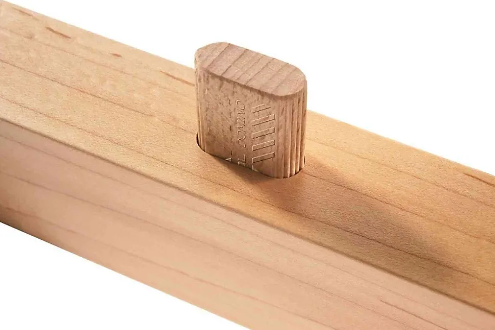 - Assortiment complet de tenons Domino XL en hêtre, tailles D12x100 et D12x140.