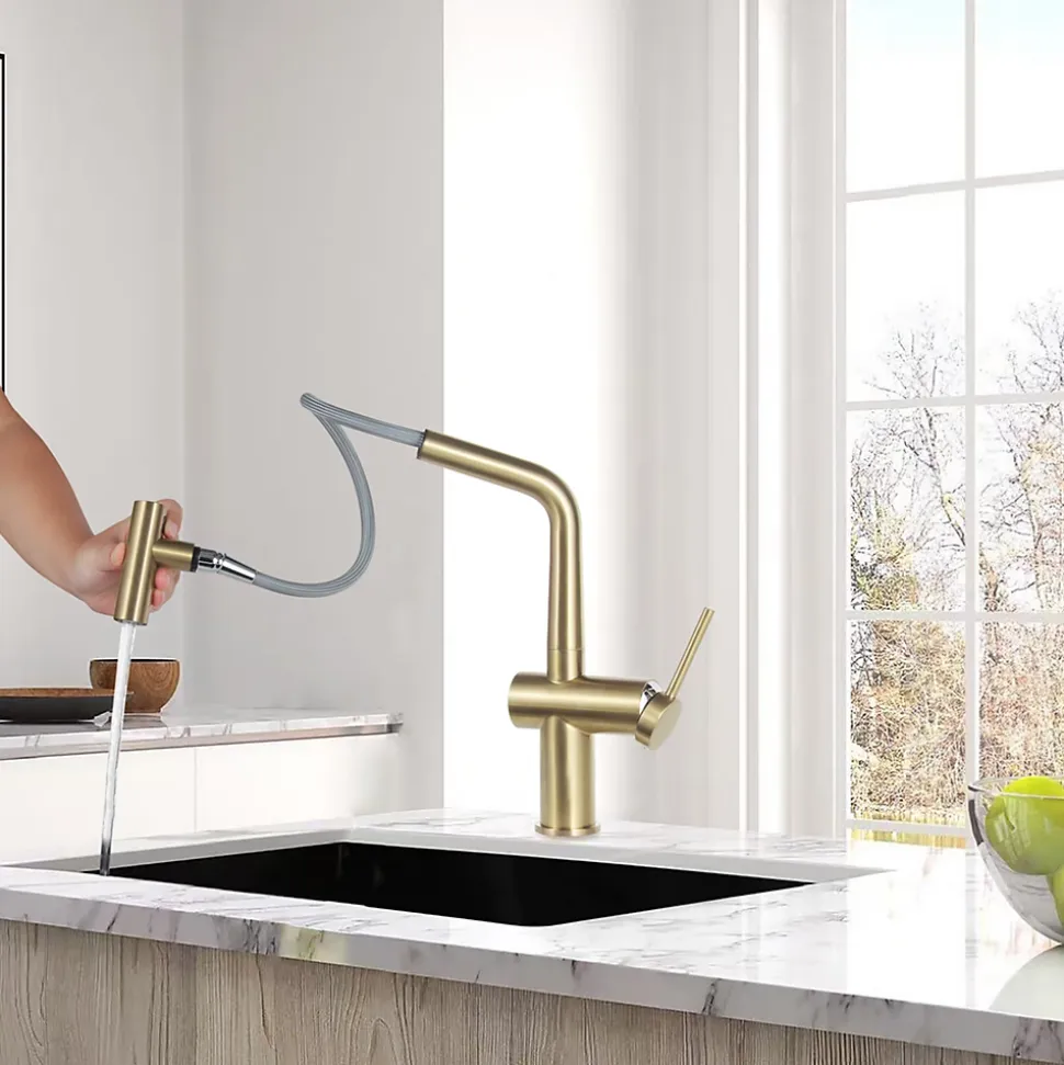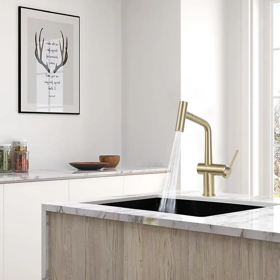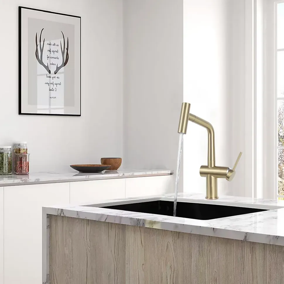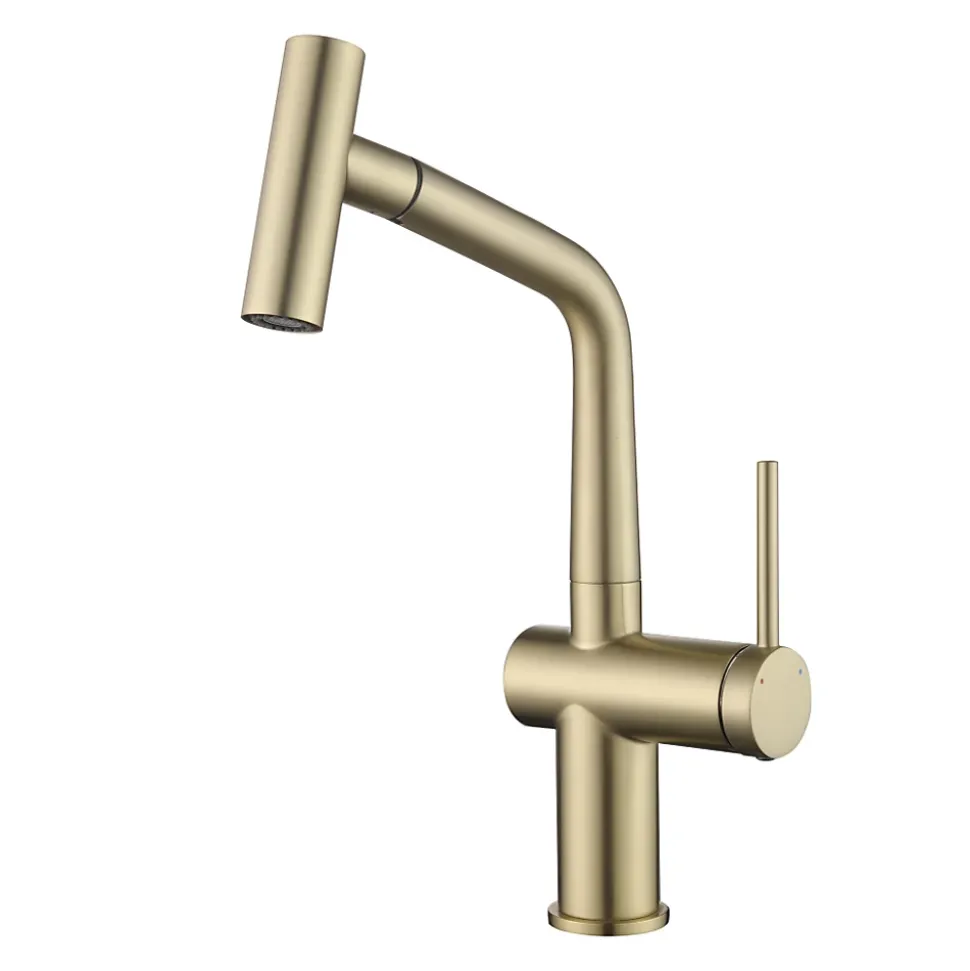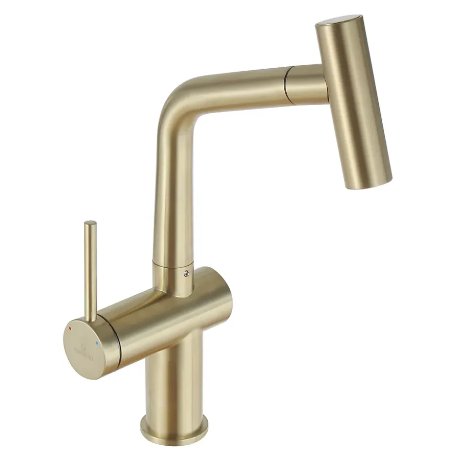 Caractéristiques du mitigeur d’évier à levier en acier inoxydable avec bec extractible, monotrou, Ceramia Timeless, or brossé (TMLKF185BG) :Type de produit : mitigeur de cuisine Marque : CeramiaSérie : TimelessMatière : Acier inoxydable 304SUSColoris : orFinition : brosséType de mitigeur : à levier unique Type d’installation : monotrou, à poserHauteur de meuble sous vasque conseillé : 33 cmTypes de jets : Douchette 2 fonctions en acier inoxydable :Jet pluie (spray)Jet concentré (stream)Cartouche en céramique de haute qualitéMarque SEDAL (Espagne)Testée pour plus de 500 000 cycles d’ouverture/fermetureTuyaux d’alimentation eau chaude/froide en PEX certifié qualité alimentaireTuyau extractible en PEX alimentaire pour une utilisation sécurisée et flexibleConnecteurs rapides en PEX alimentaireLivré dans une boîte blanche avec mousse de protectionVasque et meuble non fournis
