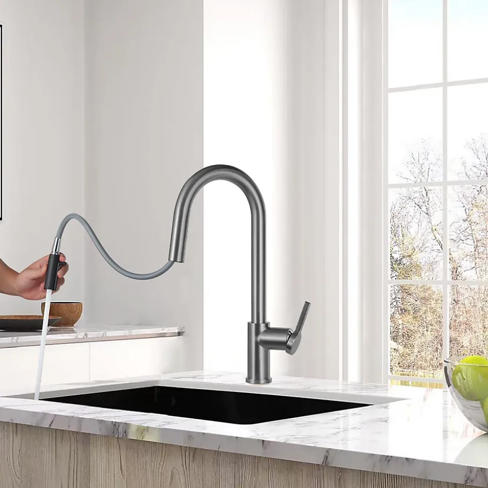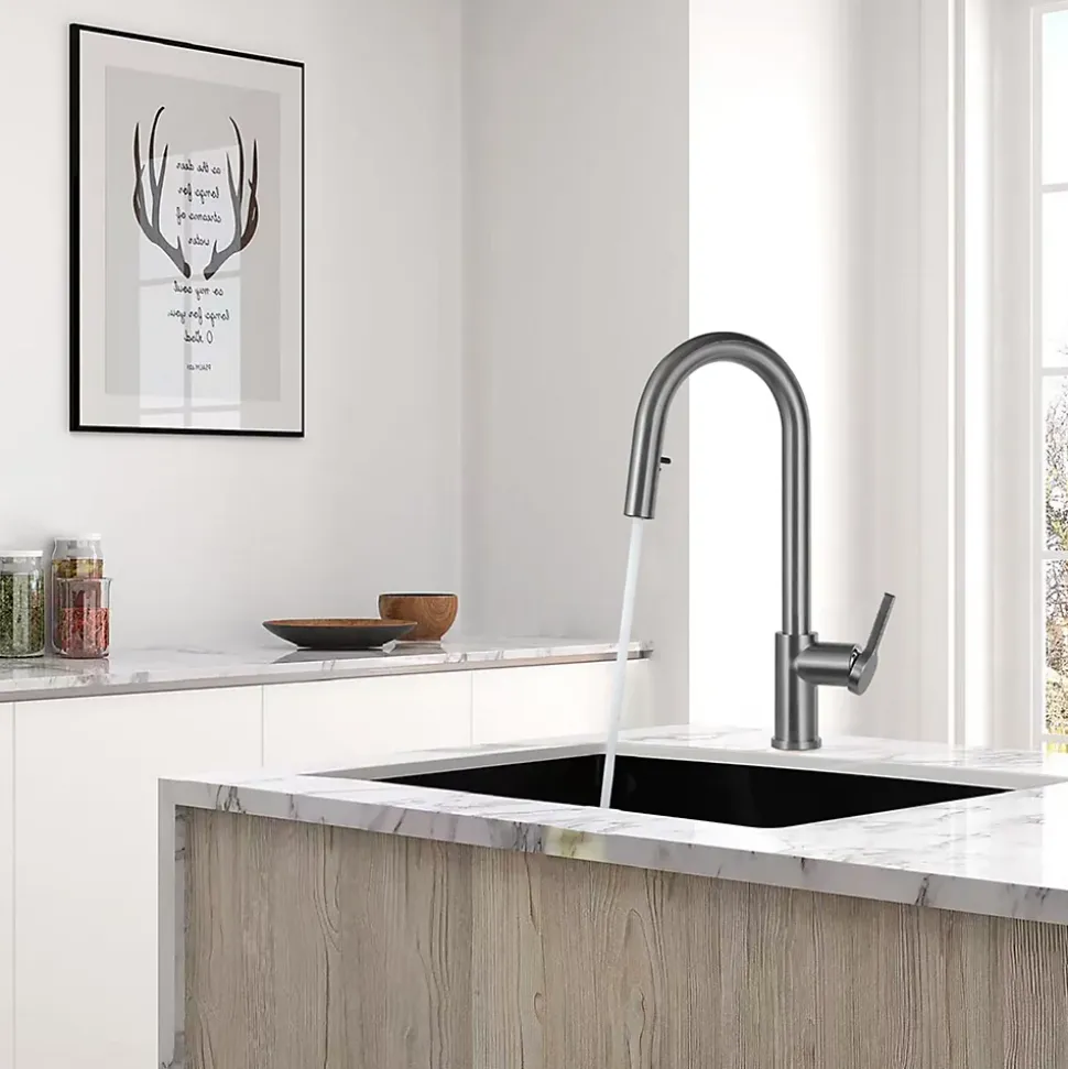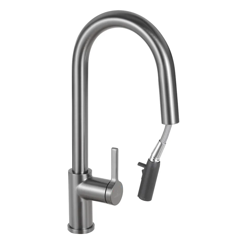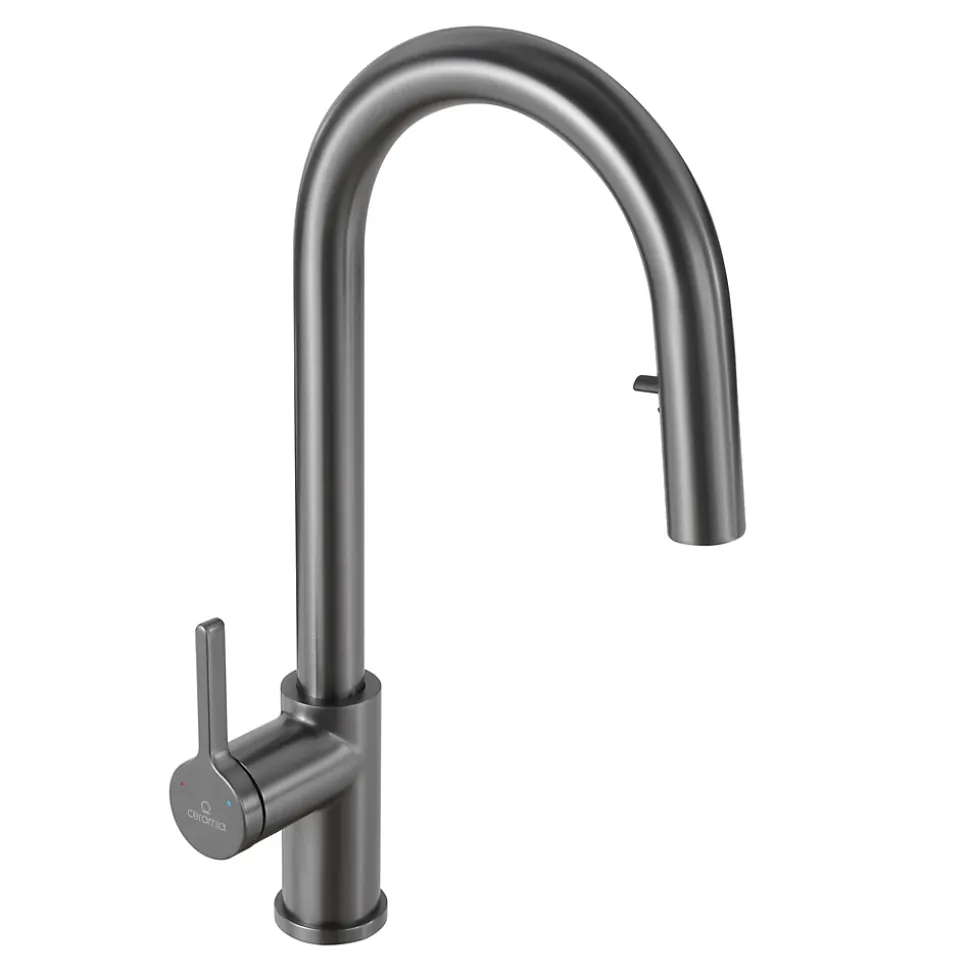 Mitigeur d’évier à levier Ceramia Timeless – Gun Metal brossé (TMLKF285BGM)Qualité supérieure en acier inoxydable : solidité et résistance garanties dans le tempsDouchette extractible : flexibilité idéale pour rincer la vaisselle et nettoyer l’évier sans effortInstallation monotrou : design moderne et discret, facile à poserFinition élégante Gun Metal brossé : apporte une touche contemporaine à votre cuisineExcellent rapport qualité/prix : une robinetterie premium à un tarif très accessibleApprécié par de nombreux clients : fiabilité et praticité déjà validées au quotidien