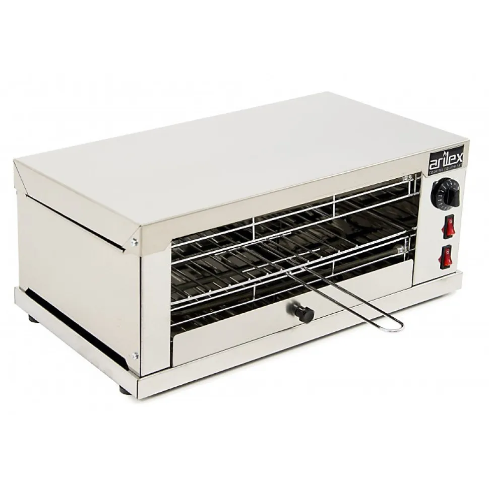 Toaster Electrique Multifonction DUO – Arilex Toaster Electrique Multifonction DUO – Arilex Résistance blindées en acier inoxydable fabriquées en Espagne.Équipés d’une minuterie de 15 minutes (modèle DUOT).Ramasse-miettes en acier inoxydable.Profondeur intérieure de 27 cm qui permet de toaster, gratiner ou chauffer des produits de plus grand volume que dans un toasteur conventionnel.Option : Couvercle de grille-pain DUO en acier chromé, très utile pour placer des petits pain, des toasts, des paninis ou tout autre plat pour le garder au chaud. De cette manière, toute la chaleur émise par notre grille-pain DUO est rendue plus efficace.Interrupteur lumineux pour le fonctionnement de résistances (une pour chaque résistance).Grilles amovibles avec poignées télescopiques.1DUOT :Fonctions : 1 + 2Compartiments : 1Puissance (KW) : 2,3Tension (V) : 230Grilles (LxP) mm : 370x260Dimensions (LxPxH) mm : 510x280x225 mmPoids : 13 Kg2DUOT :Fonctions : 1 + 2Compartiments : 2Puissance (KW) : 3,45Tension (V) : 230Grilles (LxP) mm : 370x260Dimensions (LxPxH) mm : 510x280x225 mmPoids : 18 Kg l51- L0.1- P28- h22.5- Acier Inoxydable
