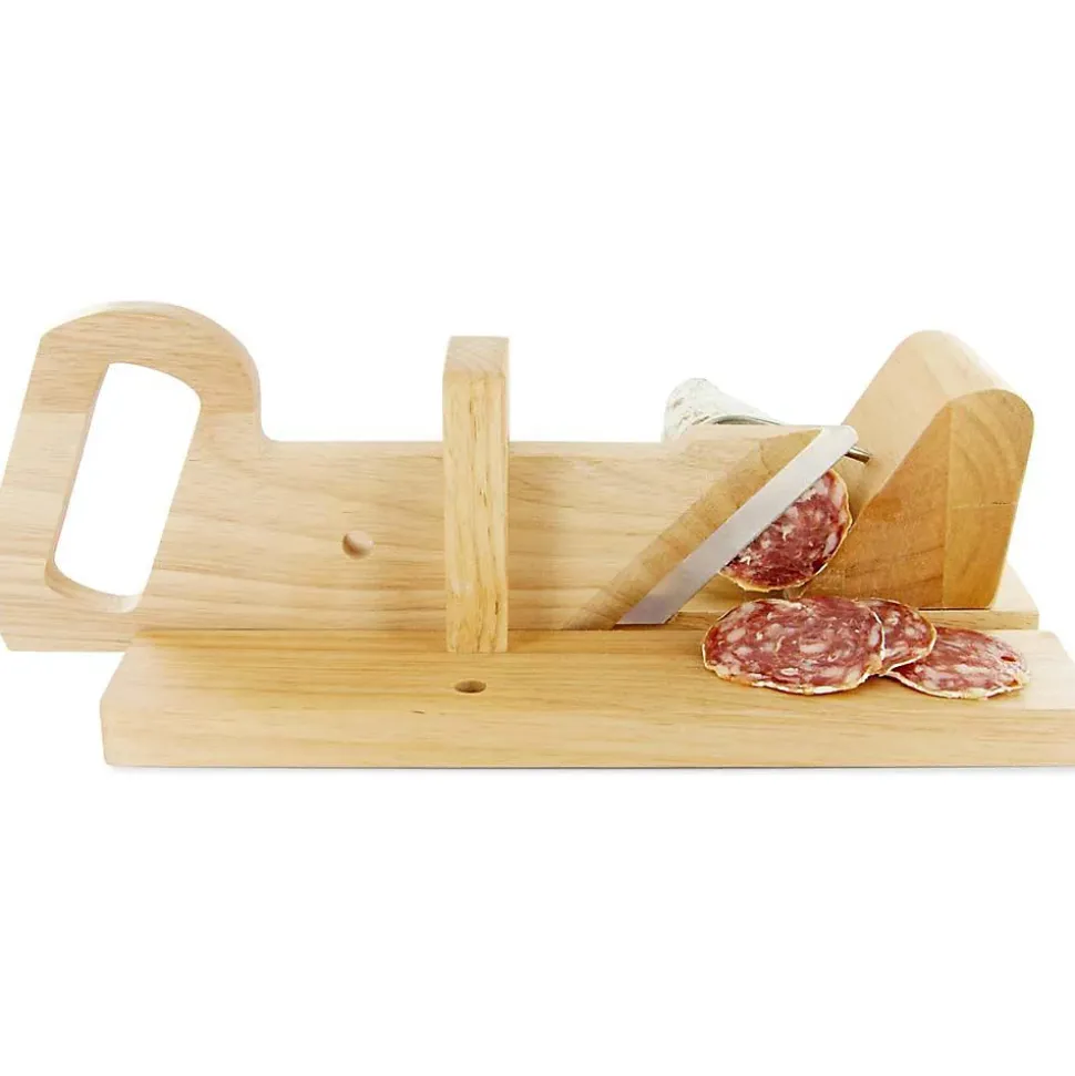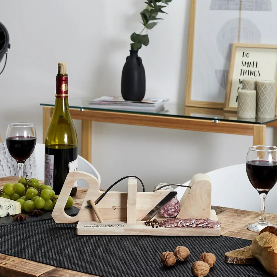 Aspect : Matériau principal = Bois • Matériaux secondaires = Inox (lame) • Dimensions : Hauteur (en cm) = 11,80 • Longueur (en cm) = 28,50 • Profondeur (en cm) = 17,00 • Autres caractéristiques : Poids (en kg) = 0,94 • Trancheuse à charcuterie en bois