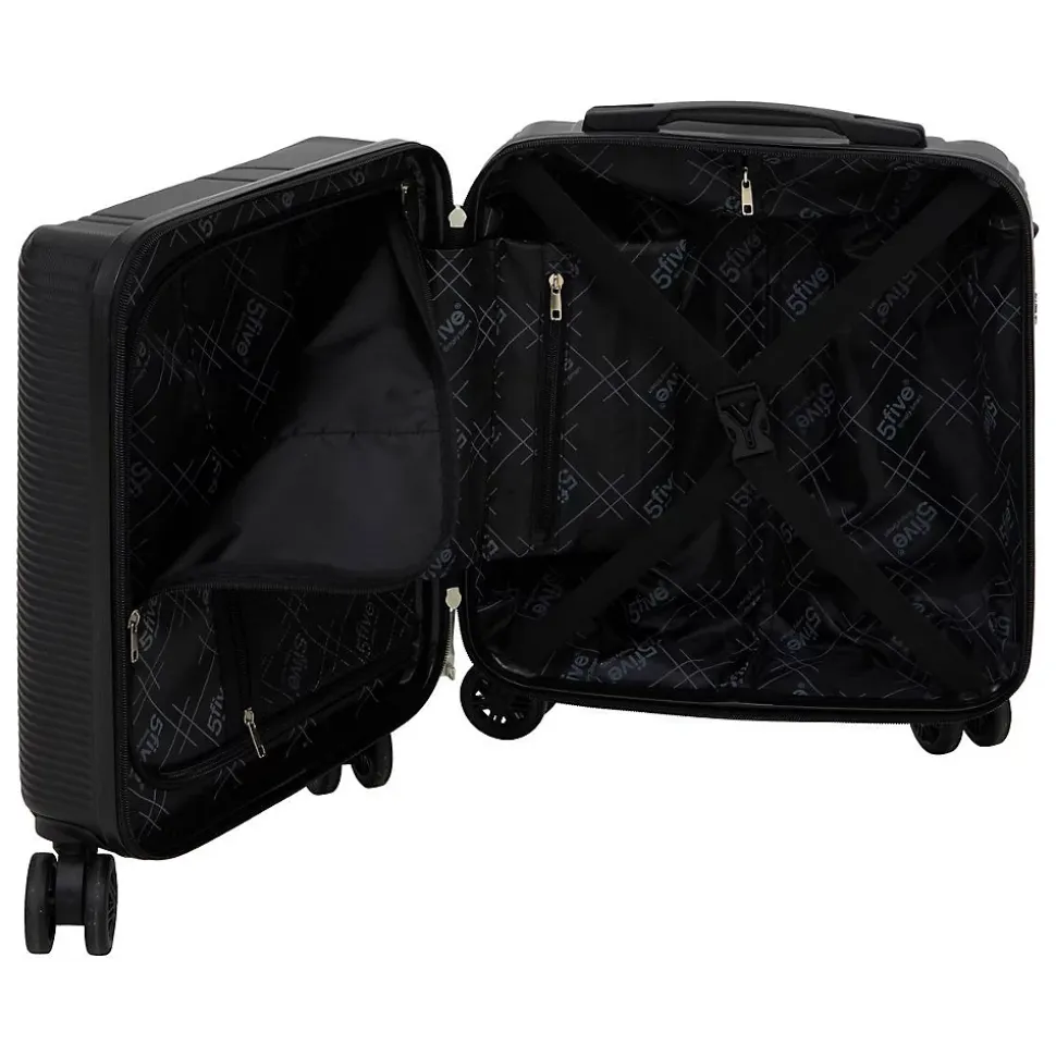 Valise cabine ABS low cost 8 rouesDESIGN : Valise noire au style épuré et moderne, parfaite pour garder vos affaires organisées et voyager avec élégance.PRATIQUE : Format compact et léger, facile à transporter et à glisser dans vos bagages ou compartiments.ROBUSTESSE : Matériau résistant aux chocs, pour protéger vos effets personnels lors de vos déplacements.MULTI-USAGE : Idéal pour voyages, week-ends ou déplacements professionnels, pratique et élégant à la fois.5FIVE SIMPLY SMART : C’est prouvé, une maison bien rangée c’est la garantie d’un esprit léger. 5five propose des solutions intelligentes pour organiser et aménager chaque pièce de la maison, afin de faciliter le quotidien !Contenu : 1 valiseDimensions : L. 36 x P. 20 x H. 45 cmColoris : NoirMarque : 5 five simply smart
