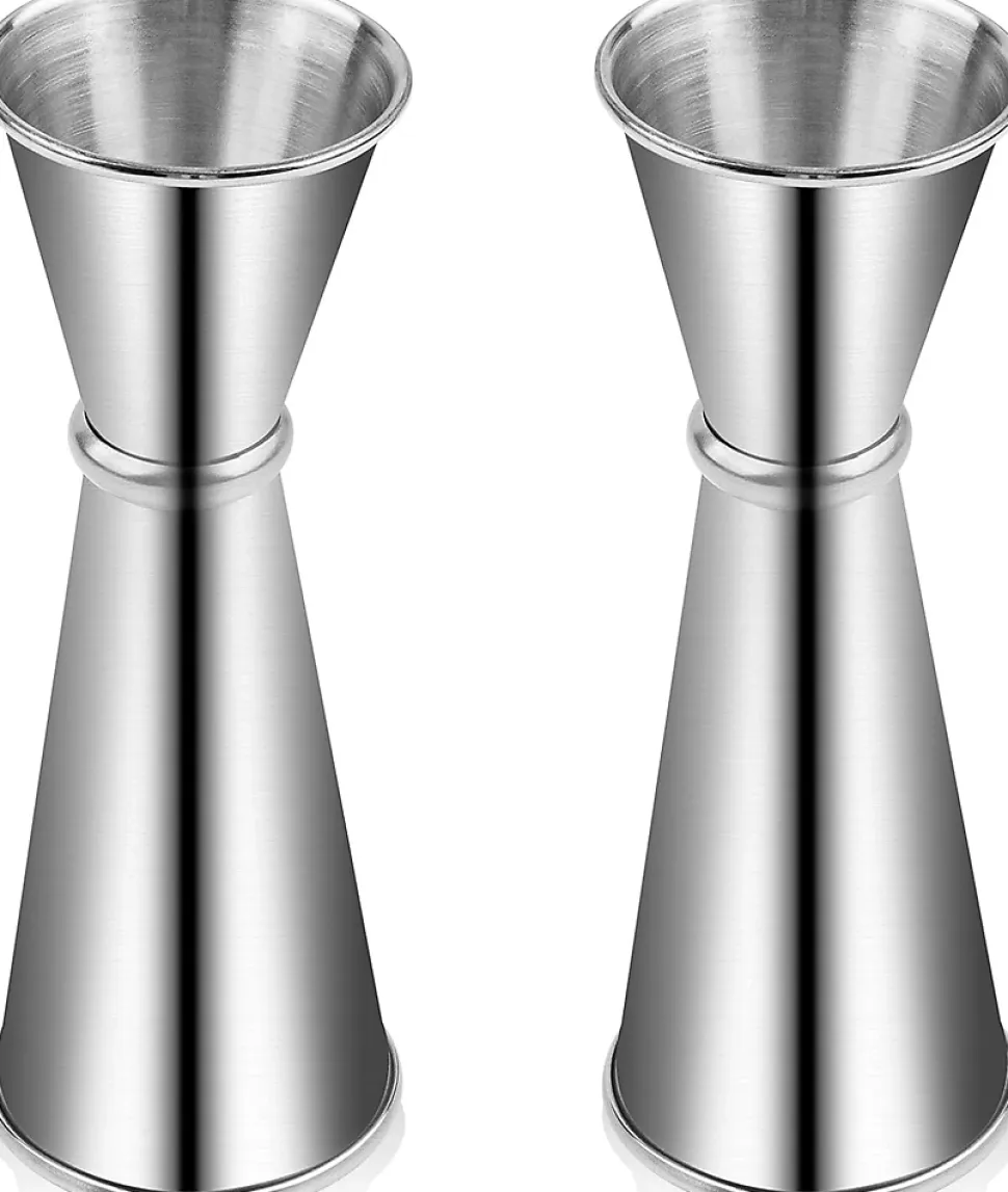 Verres doseurs à cocktail de haute qualité en acier inoxydable 18/8, durables et résistants aux chocs, conçus pour un usage professionnel ou domestique. Ce set comprend un grand gobelet de 2 oz et un petit de 1 oz, parfaits pour créer des cocktails équilibrés. Les graduations gravées permettent de verser avec précision et de maîtriser facilement l’art du cocktail. Le design épais et en forme de cloche offre un équilibre parfait et une prise en main confortable, tandis que les bords lisses et les angles larges garantissent un versement précis sans gouttes. Ergonomiques et faciles à utiliser à une main, ces verres doseurs sont parfaits pour barmans professionnels ou amateurs. Idéal pour mélanger tous types de cocktails, ils constituent également un cadeau élégant pour les passionnés de mixologie.