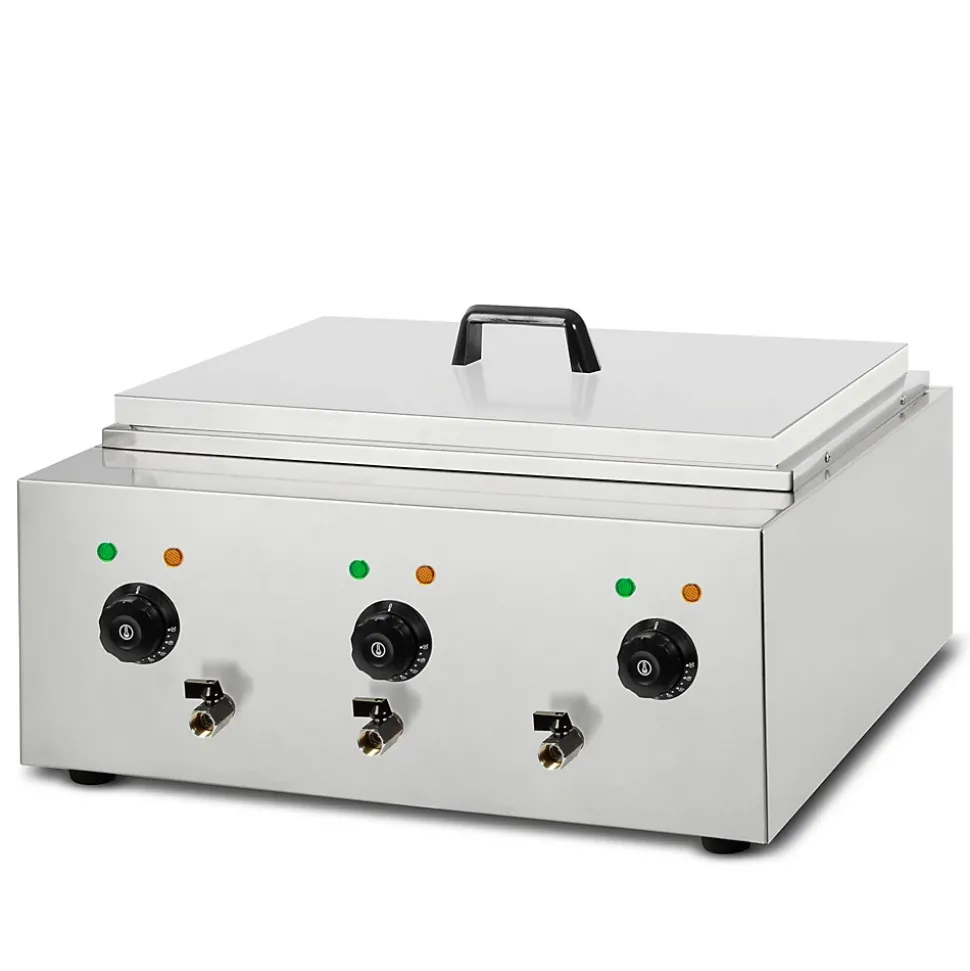 - TEMPÉRATURE PRÉCISE: trois cuves réglables séparément de 30 °C à 110 °C offrent une flexibilité maximale. Elles maintiennent la température préréglée de manière constante et fiable, pour des temps de cuisson précis et des résultats exceptionnels avec tous les types de pâtes dans le cadre d’une utilisation professionnelle.