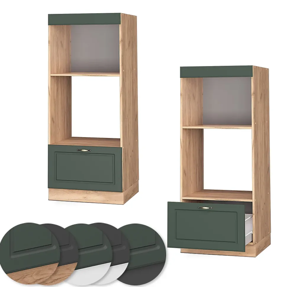 Les armoires de cuisine Fame-Line offrent une qualité premium avec des poignées métalliques solides, des charnières soft-closing pratiques et des coulisses métalliques à sortie totale à des prix raisonnables.Créez la cuisine de vos rêves : « Fame-Line » permet une composition individuelle à partir de différents modules.DIMENSIONS : L’Armoire de cuisine pour micro-ondes mesure 60 cm – Largeur, 153,6 cm – Hauteur, 58 cm – Profondeur. Toutes les tailles détaillées sont indiquées sur les photos.MATÉRIAU: La colonne four et micro onde est composée de panneaux de particules de 16 mm faciles à entretenir, avec un revêtement en résine mélamine. Les façades sont fabriquées en MDF de haute qualité.CONTENU DE LA LIVRAISON: Armoire pour micro-ondes à monter soi-même (Remarque: la décoration n’est pas incluse dans la livraison), Instructions de montage, Matériel de montage.