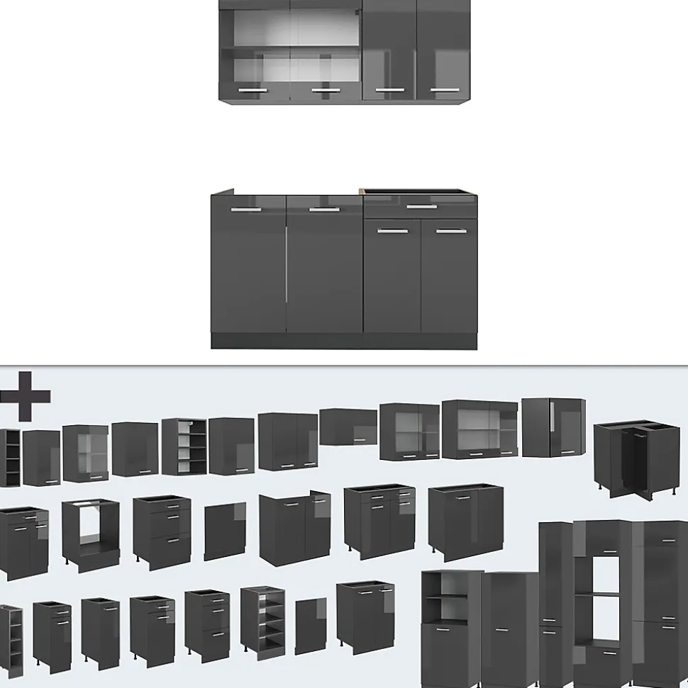 Vicco Cuisine Anthracite brillant/anthracite 140cm , PT Chêne