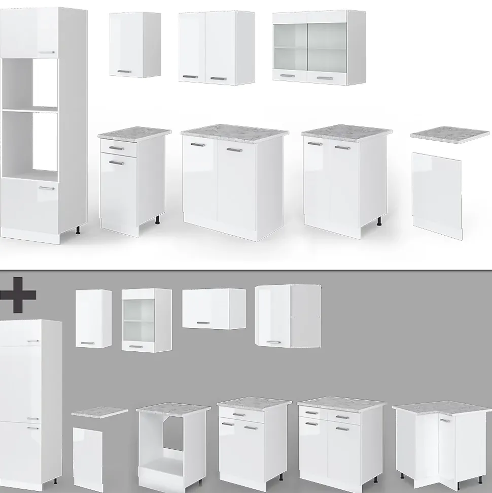 Les cuisines de la série R-Line se distinguent par un design optimal et une polyvalence exceptionnelle. En option, nous proposons le système LED Vicco ou une large gamme d’éviers Bergstroem.La kitchenette offre des modules convertis selon les souhaits du client, avec la possibilité d’obtenir des modules supplémentaires au besoin. Les pieds sont ajustables pour une hauteur personnalisée.DIMENSIONS : Le Bloc de cuisine a une taille générale de 300 cm, la profondeur et la hauteur des modules inférieurs et supérieurs sont présentées sur les photos.MATÉRIAU: La kitchenette modulaire est composée de panneaux de particules de 16 mm faciles à entretenir, avec un revêtement en résine mélamineCONTENU DE LIVRAISON : Bloc cuisine sans plan de travail, matériel de montage, instructions de montage (sauf indication contraire, les appareils électroménagers et les décorations ne sont pas compris dans la livraison).