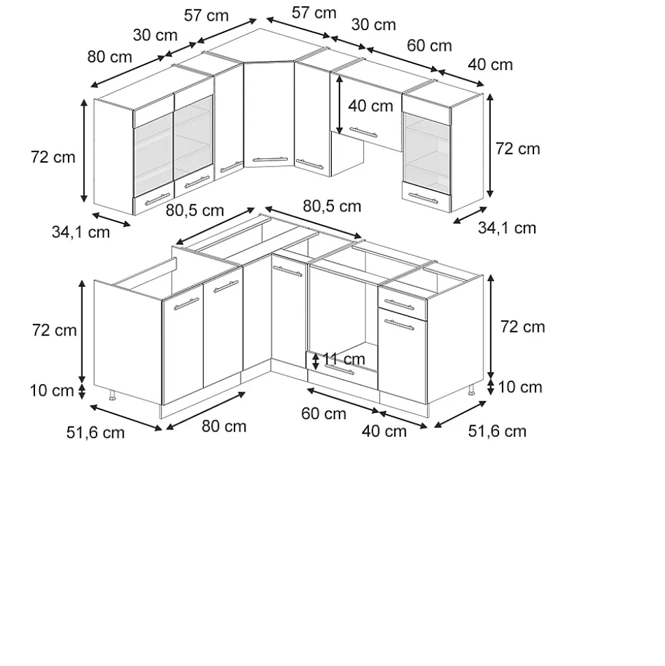 Les cuisines de la série Fame-Line offrent une qualité premium à des prix équitables. En option, nous proposons également des panneaux de lave-vaisselle entièrement intégrés de la marque Vicco.La ligne de cuisine en L offre des modules supplémentaires et un design réversible à volonté. Les façades en MDF lui confèrent un aspect stylé.DIMENSIONS : La cuisine d’angle a une largeur de 160,5 x 190 cm, une hauteur de 82 cm et une profondeur de 60 cm des deux côtés. Toutes les dimensions détaillées sont indiquées sur les photos. Les meubles bas ont une profondeur de 51,6 cm.MATÉRIAU : la cuisine d’angle est composée de panneaux de particules de 16 mm d’épaisseur, faciles à entretenir et revêtus de résine mélamine. Toutes les façades des unités de cuisine sont fabriquées en MDF de haute qualité.LIVRAISON : bloc de cuisine avec plan de travail, matériel de montage, instructions de montage (sauf indication contraire, les appareils électroménagers et les décorations ne font pas partie de la livraison)