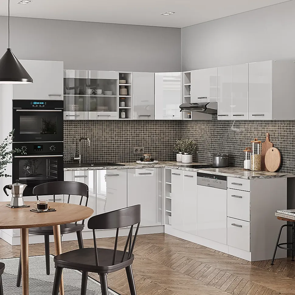 Les cuisines de la série R-Line se distinguent par un design optimal et une polyvalence universelle. En option, nous proposons également des panneaux de lave-vaisselle entièrement intégrés de la marque Vicco.Notre cuisine se compose de modules convertis à votre guise. Vous pouvez également obtenir des modules supplémentaires. Les pieds sont ajustables en hauteur pour un confort optimal.DIMENSIONS : La Cuisine en forme de L a une taille générale de 237×247 cm, la profondeur et la hauteur des modules inférieurs et supérieurs sont présentées sur les photos. Les meubles bas ont une profondeur de 46 cm.MATÉRIAU: La cuisine modulaire en angle est composée de panneaux de particules de 16 mm faciles à entretenir, avec un revêtement en résine mélamineCONTENU DE LIVRAISON : bloc de cuisine avec plan de travail, matériel de montage, instructions de montage (sauf indication contraire, les appareils électroménagers et les décorations ne sont pas compris dans la livraison).