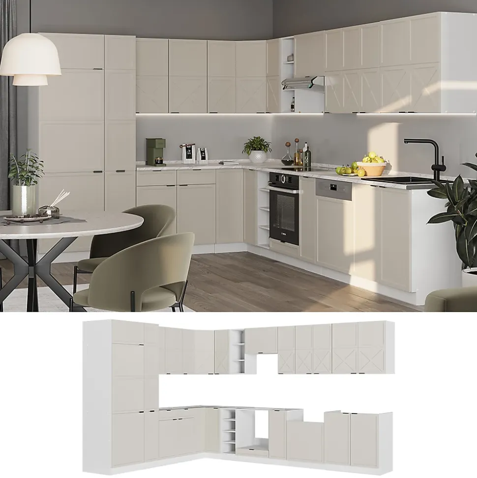 Vicco Cuisine en angle GrisBeige/Blanc 347x257cm , PT Anthracite