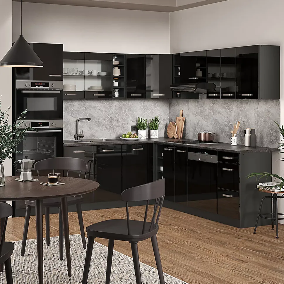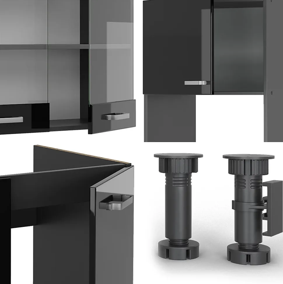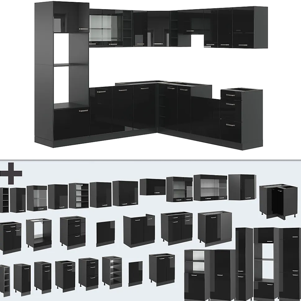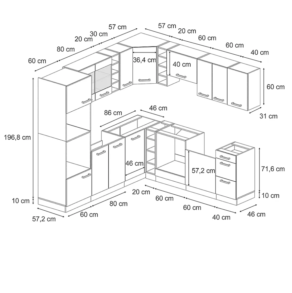 Les cuisines de la série R-Line se distinguent par un design optimal et une polyvalence universelle. En option, nous proposons également des panneaux de lave-vaisselle entièrement intégrés de la marque Vicco.Notre cuisine se compose de modules convertis à votre guise. Vous pouvez également obtenir des modules supplémentaires. Les pieds sont ajustables en hauteur pour un confort optimal.DIMENSIONS : La Cuisine en forme de L a une taille générale de 237×247 cm, la profondeur et la hauteur des modules inférieurs et supérieurs sont présentées sur les photos. Les meubles bas ont une profondeur de 46 cm.MATÉRIAU: La cuisine modulaire en angle est composée de panneaux de particules de 16 mm faciles à entretenir, avec un revêtement en résine mélamineCONTENU DE LIVRAISON : bloc de cuisine avec plan de travail, matériel de montage, instructions de montage (sauf indication contraire, les appareils électroménagers et les décorations ne sont pas compris dans la livraison).