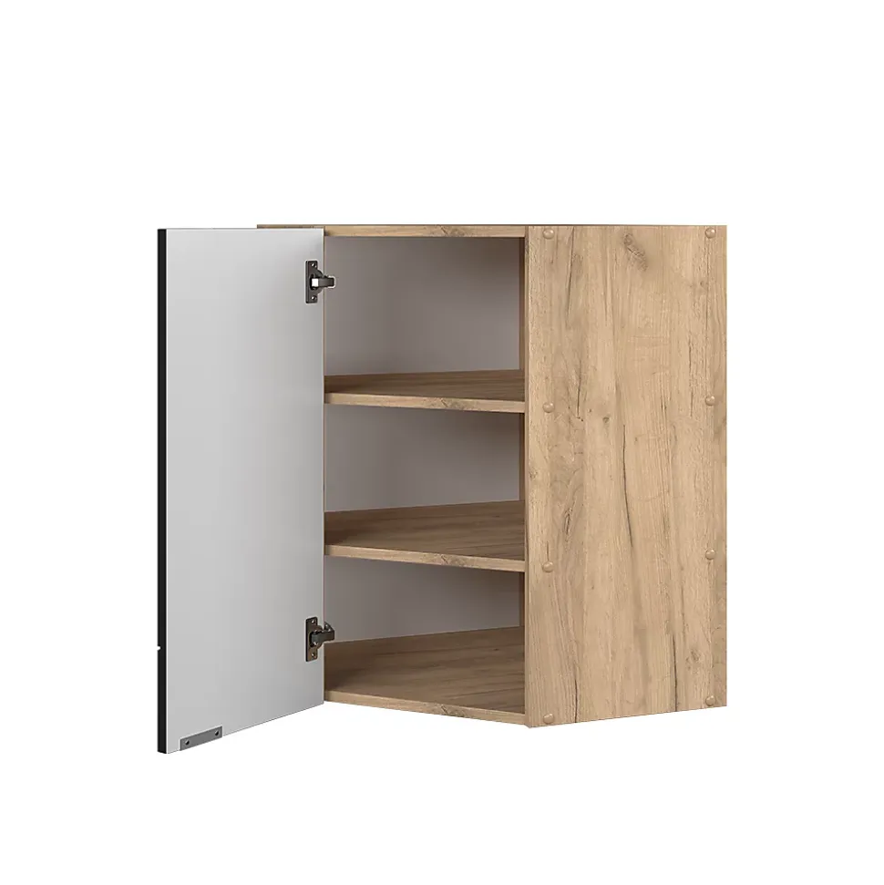 Les armoires de cuisine Fame-Line offrent une qualité premium avec des poignées métalliques solides, des charnières soft-closing pratiques et des coulisses métalliques à sortie totale à des prix raisonnables.Créez la cuisine de vos rêves : « Fame-Line » permet une composition individuelle à partir de différents modules.DIMENSIONS : Le Meuble cuisine d’angle mesure 57×57 cm – Largeur, 72 cm – Hauteur, 34,1 cm – Profondeur. Toutes les tailles détaillées sont indiquées sur les photos.MATÉRIAU: L’armoire de cuisine d’angle murale est composée de panneaux de particules de 16 mm faciles à entretenir, avec un revêtement en résine mélamine. Les façades sont fabriquées en MDF de haute qualité.CONTENU DE LA LIVRAISON: Meuble haut d’angle à monter soi-même (Remarque: la décoration n’est pas incluse dans la livraison), Instructions de montage, Matériel de montage