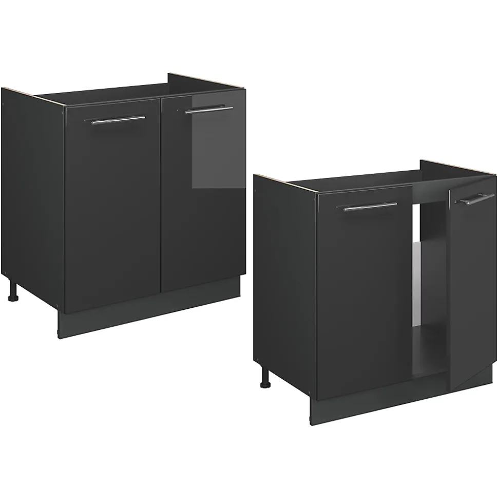 Vicco Meuble bas sous-évier Anthracite Haute brillance 80cm , PT Chêne