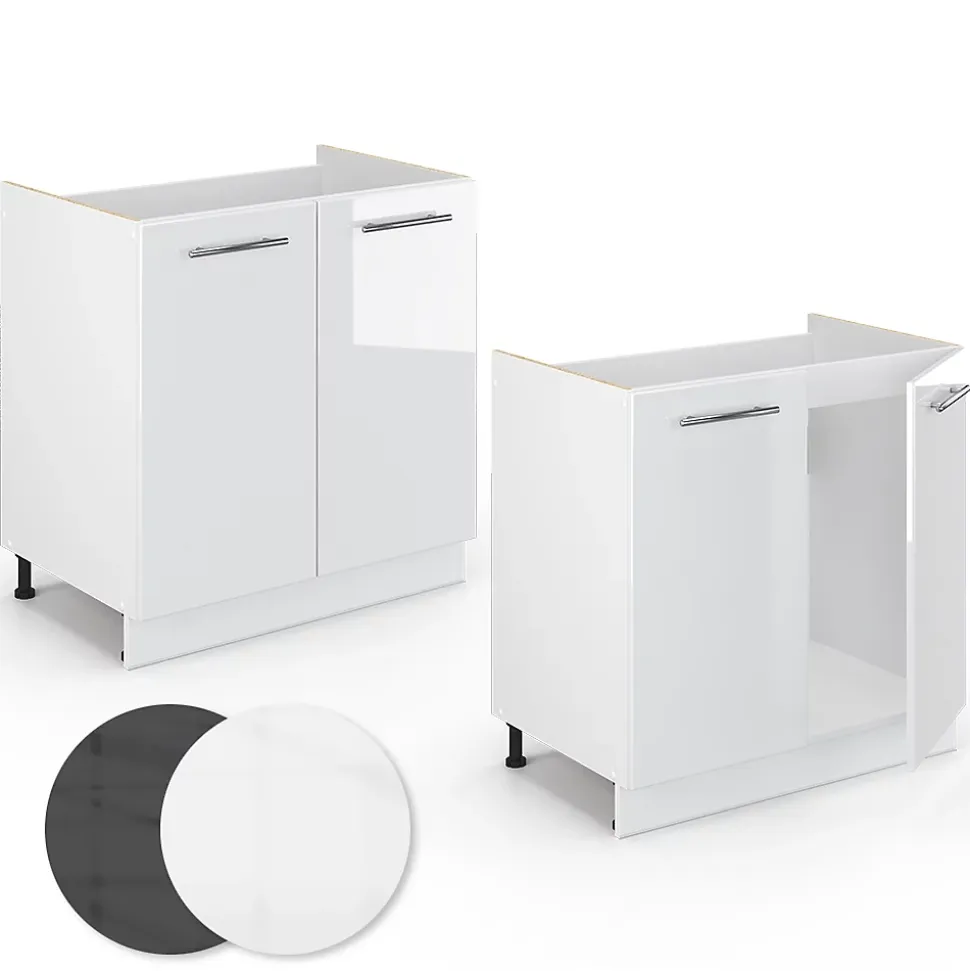 Vicco Meuble bas sous-évier Blanc Haute brillance 80cm , PT Anthracite