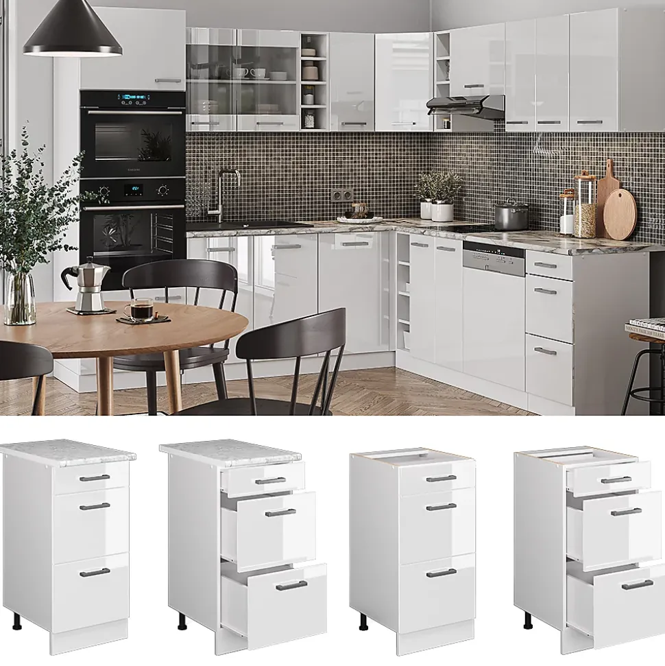 Vicco Meuble cuisine Blanc Haute brillance 40cm avec tiroirs, sans PT