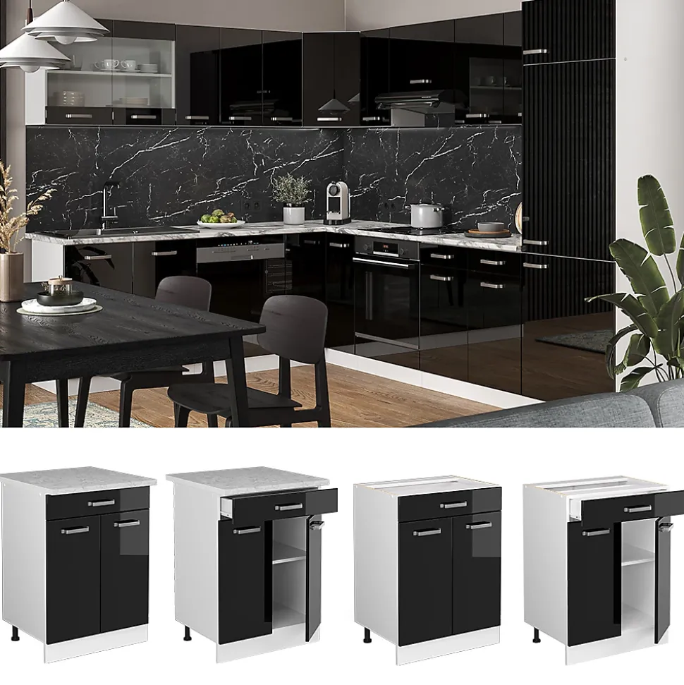 L’armoire basse pour la cuisine « R-Line » est un choix parfait pour chaque maison. Sa bonne conception et son design optimal offrent un aspect agréable à tout intérieur. Sa polyvalence en fait un produit universel qui convient à tout type de cuisine.Le meuble de cuisine bas est personnalisable grâce à des modules convertibles et supplémentaires. Les pieds ajustés permettent une hauteur parfaite.DIMENSIONS : Le Meuble bas de cuisine avec tiroirs mesure 60 cm – Largeur, 81,6 cm – Hauteur, 46 cm – Profondeur. Toutes les tailles détaillées sont indiquées sur les photos.MATÉRIAU: Le meuble bas de cuisine est composé de panneaux de particules de 16 mm faciles à entretenir, avec un revêtement en résine mélamine.CONTENU DE LA LIVRAISON: Meuble bas de cuisine en kit (Remarque: la décoration n’est pas incluse dans la livraison), Instructions de montage, Matériel de montage.