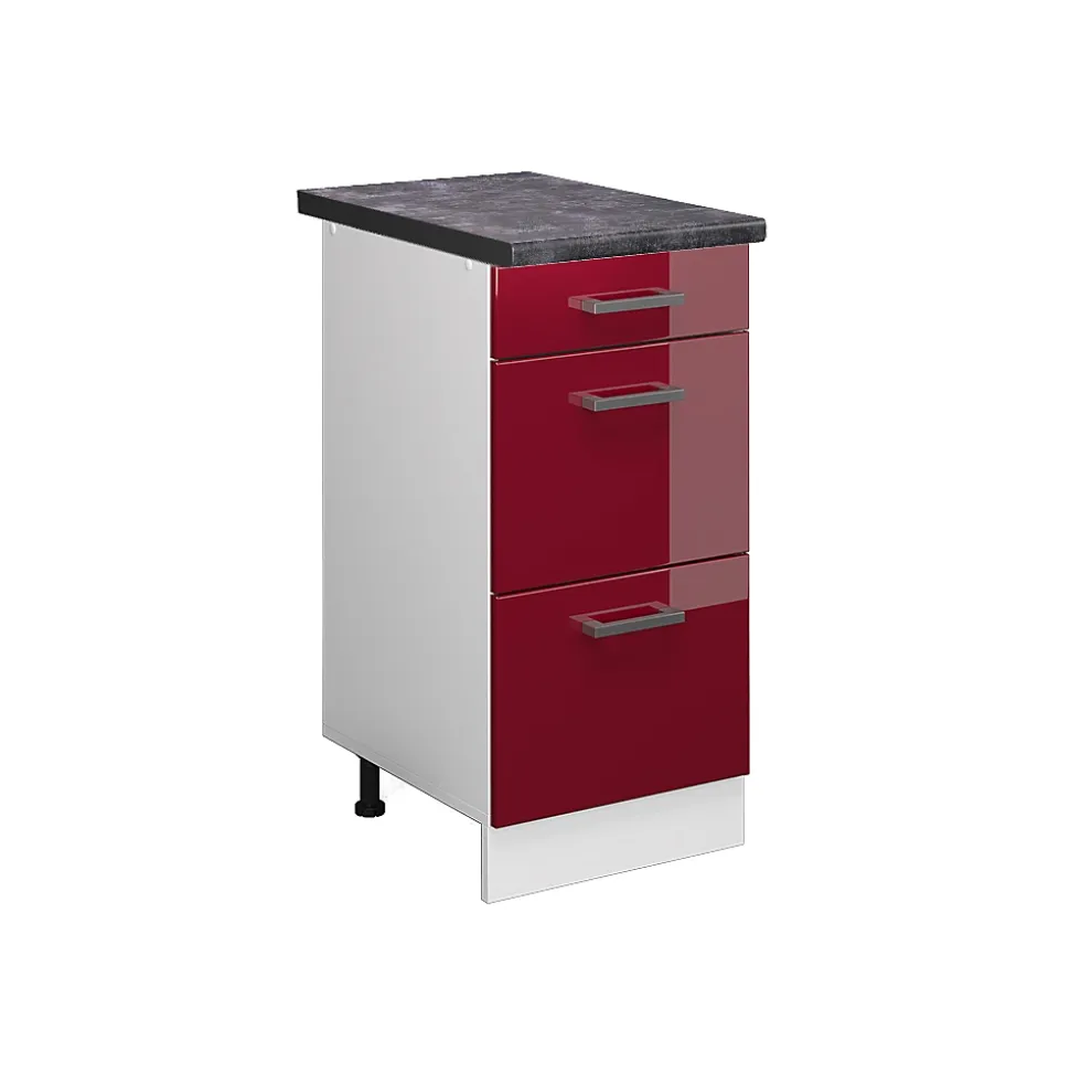 Vicco Meuble cuisine Rouge brillant 40cm avec tiroirs, PT Anthracite