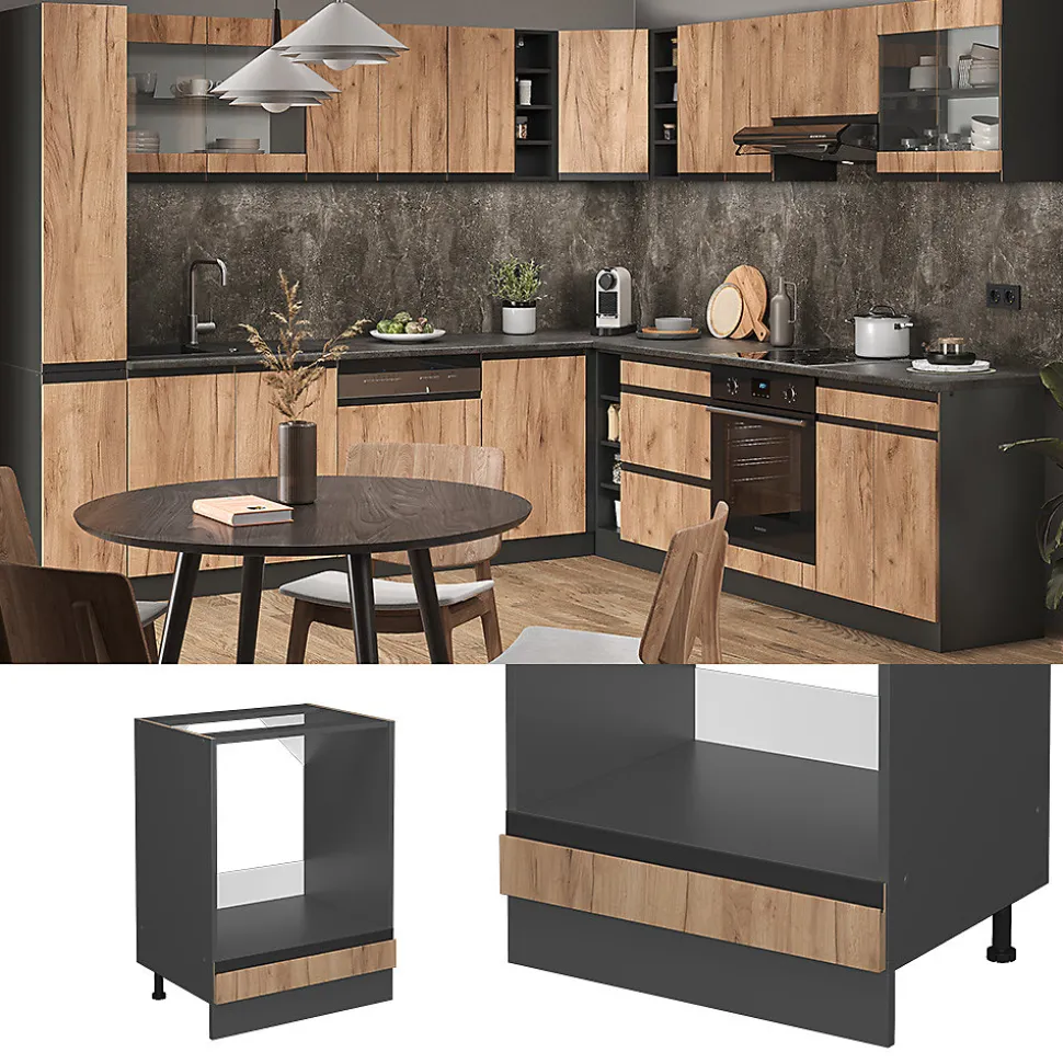 Ce meuble « R-Line » est la solution idéale pour chaque maison, offrant une bonne conception et un design optimal pour optimiser l’espace. Son apparence agréable et son utilisation facile en font un plaisir quotidien.Ce meuble cuisine est modulaire et adaptable à vos besoins. Vous pouvez obtenir des modules supplémentaires selon vos envies. Les pieds ajustables permettent de régler la hauteur.DIMENSIONS : Le Meuble four et plaque mesure 60 cm – Largeur, 81,6 cm – Hauteur, 60 cm – Profondeur. Toutes les tailles détaillées sont indiquées sur les photos.MATÉRIAU: Le meuble pour cuisinière est composé de panneaux de particules de 16 mm faciles à entretenir, avec un revêtement en résine mélamine.CONTENU DE LA LIVRAISON : Armoire de cuisine avec plan de travail, matériel de montage, instructions de montage (sauf indication contraire, les appareils électroménagers et les décorations ne sont pas compris dans la livraison).