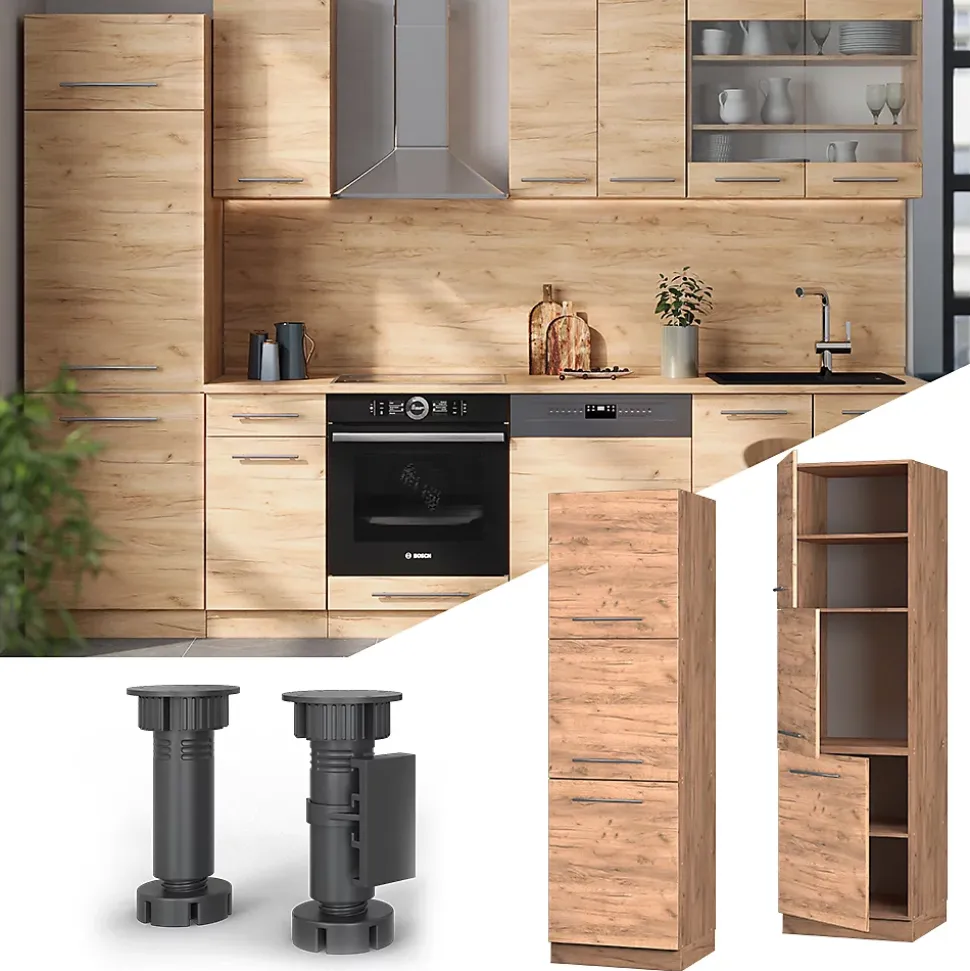 Fame-Line – Les armoires de cuisine offrent une qualité premium avec des poignées métalliques solides, des charnières soft-closing pratiques et des coulisses métalliques à sortie totale à des prix raisonnables.L’armoire de la cuisinière peut être complétée par des modules supplémentaires et peut être déplacée de manière flexible.DIMENSIONS : l’armoire de cuisine pour la cuisinière encastrée a une largeur de 60 cm, une hauteur de 206,8 cm et une profondeur de 58,1 cm. Toutes les dimensions détaillées sont indiquées sur les photos.MATÉRIAU : le meuble de cuisine est composé de panneaux de particules de 16 mm d’épaisseur, faciles à entretenir et revêtus de résine mélamine.LIVRAISON : Armoire de cuisine en kit, instructions de montage, matériel de montage.