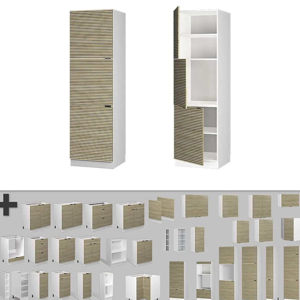 Les armoires de cuisine Fame-Line offrent une qualité premium avec des poignées métalliques solides, des charnières soft-closing pratiques et des coulisses métalliques à sortie totale à des prix raisonnables.Créez la cuisine de vos rêves : « Fame-Line » permet une composition individuelle à partir de différents modules.DIMENSIONS : Le Meuble four et plaque mesure 60 cm – Largeur, 206,8 cm – Hauteur, 58 cm – Profondeur. Toutes les tailles détaillées sont indiquées sur les photos.MATÉRIAU: Le meuble pour cuisinière est composé de panneaux de particules de 16 mm faciles à entretenir, avec un revêtement en résine mélamine. Les façades sont fabriquées en MDF de haute qualité.CONTENU DE LA LIVRAISON: Armoire pour four à monter soi-même (Remarque: la décoration n’est pas incluse dans la livraison), Instructions de montage, Matériel de montage