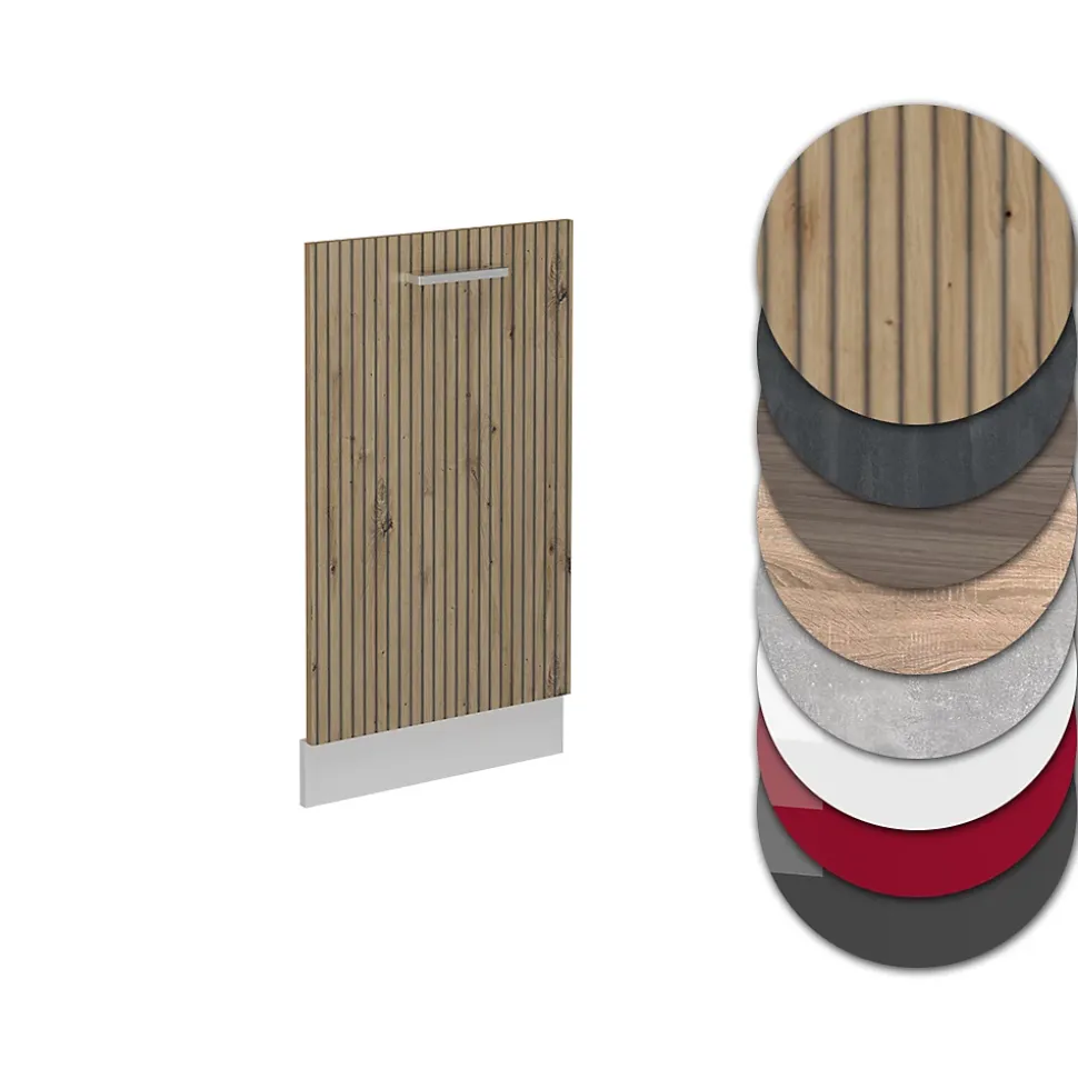 Le panneau frontal « R-Line » est idéal pour les lave-vaisselle avec panneau de commande intérieur – stylé et facile à utiliser.La porte frontale du lave-vaisselle s’adapte parfaitement à toutes les cuisines R-Line et offre des possibilités d’adaptation flexibles – idéal pour les lave-vaisselle entièrement intégrés.DIMENSIONS : La façade pour le lave-vaisselle a les dimensions suivantes : profondeur : 1,6 cm, largeur : 45 cm, hauteur : 81,8 cm.MATÉRIAU : la façade est en panneau de particules facile à entretenir, 16 mm, revêtement en résine de mélamine.LIVRAISON : Façade de lave-vaisselle en kit (remarque : la décoration n’est pas comprise dans la livraison), instructions de montage, matériel de montage