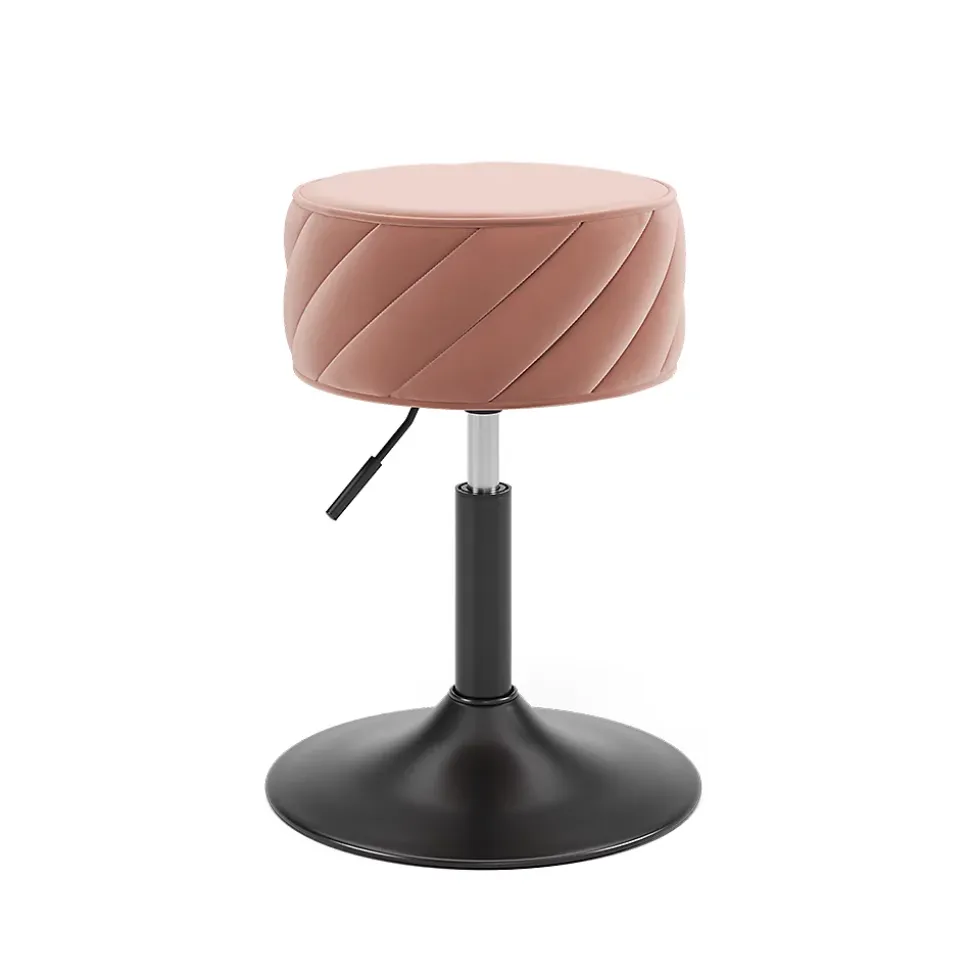 Que ce soit comme siège confortable pour la coiffeuse ou comme tabouret d’appoint tendance dans la chambre à coucher, le salon ou la salle de bains, « Cherio » attire le regard dans chaque pièce grâce à son design esthétique.Le tabouret de la table de maquillage offre une assise confortable pour le stylisme et le maquillage quotidiens. Avec son design élégant et sa construction stable, il garantit une utilisation de longue durée.DIMENSIONS : Le tabouret pour la coiffeuse a les dimensions suivantes : pied Ø 38,5 cm, assise Ø 35 cm. Hauteur : 50,5-64 cm. Les dimensions détaillées sont indiquées sur les photos.MATÉRIAU : le pouf est fabriqué en polyester et en métal. Les matériaux sont faciles à entretenir et à nettoyer.LIVRAISON : tabouret, instructions de montage, matériel de montage (décoration non comprise)