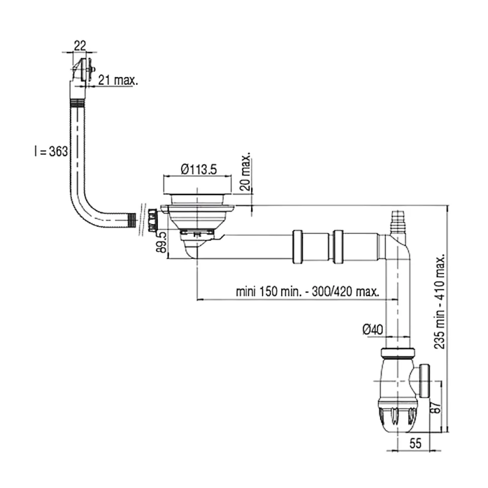 Avantages du vidage ValentinVidage recoupable et coulissant : s’ajuste en largeur, hauteur et profondeurPratique : gain de place sous le meubleMontage 10x plus rapide avec un raccordement facileCaractéristiques techniques du vidage ValentinPour évier 1 cuve D=90mm avec TPCouleur : blancForme siphon bouteilleMatériau :polypropylène (PP)Type de piège à odeurs : eau/fluideAvec tunnel de drainage : OuiTaille nominale d’écoulement : DN 40Avec bouchon de drainage : OuiRaccordement drainage : femelle. à glissementAvec raccordement aux raccords de tuyaux supplémentaire : OuiPartie du siphon sur le panneau arrière : OuiSens de la sortie : côtéGarantie 10 ans.Pour plus d’informations retrouvez la fiche technique