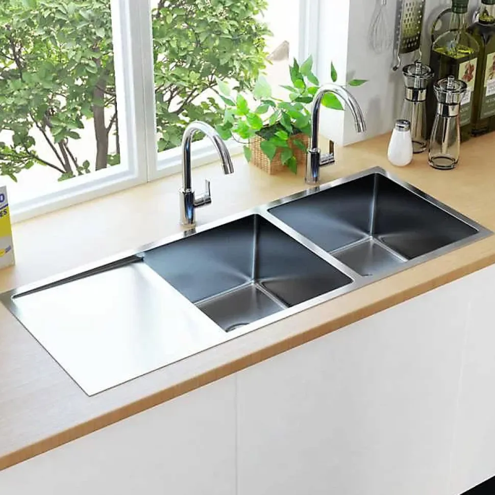 L’aspect et la convivialité de notre évier de cuisine fait à la main en acier inoxydable digne d’un designer est tout simplement fascinant. La finition satinée lisse et soyeuse avec deux bols contemporains dégage un charme classique et sophistiqué !