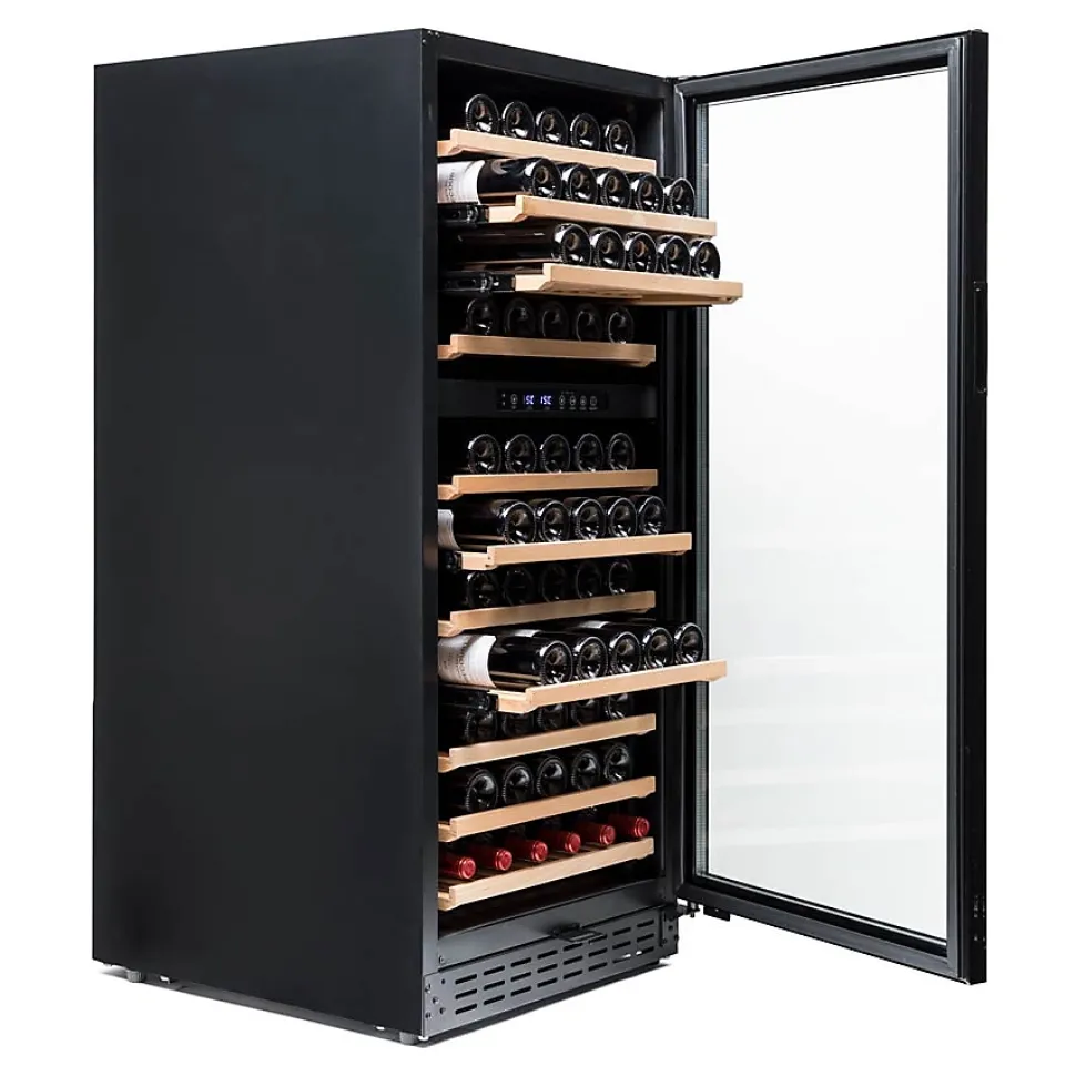La cave à vin Vinobox 110 2 zones est une chambre de service pour de moyennes à grandes quantités de vin en garde. Parfait pour les professionnels, de par sa grande capacité et sa fiabilité, et pour les grands amateurs de vin qui souhaitent conserver leurs vins dans les meilleures conditions. 59,5 cm de largeur sur 136cm de hauteur et 68cm de profondeur.