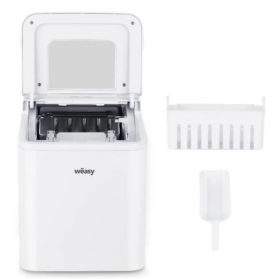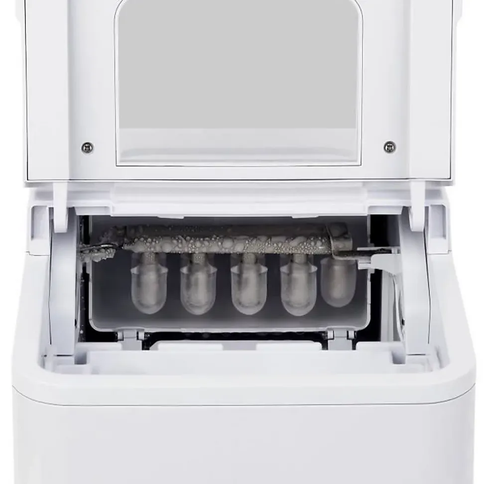Profitez de la machine a glaçons IGLOO8 pour rafraichir vos boissons ! Avec sa puissance de 120 watts et son réservoir d’une capacité de 1,5 litres, l’appareil vous assure une production de glaçons en seulement 9 minutes. Vous obtenez jusqu’a 12 kilogrammes par jour. Pratique, un voyant rouge indique lorsque que le bac a glaçons est plein et lorsque le réservoir d’eau est vide. Le couvercle transparent vous perm