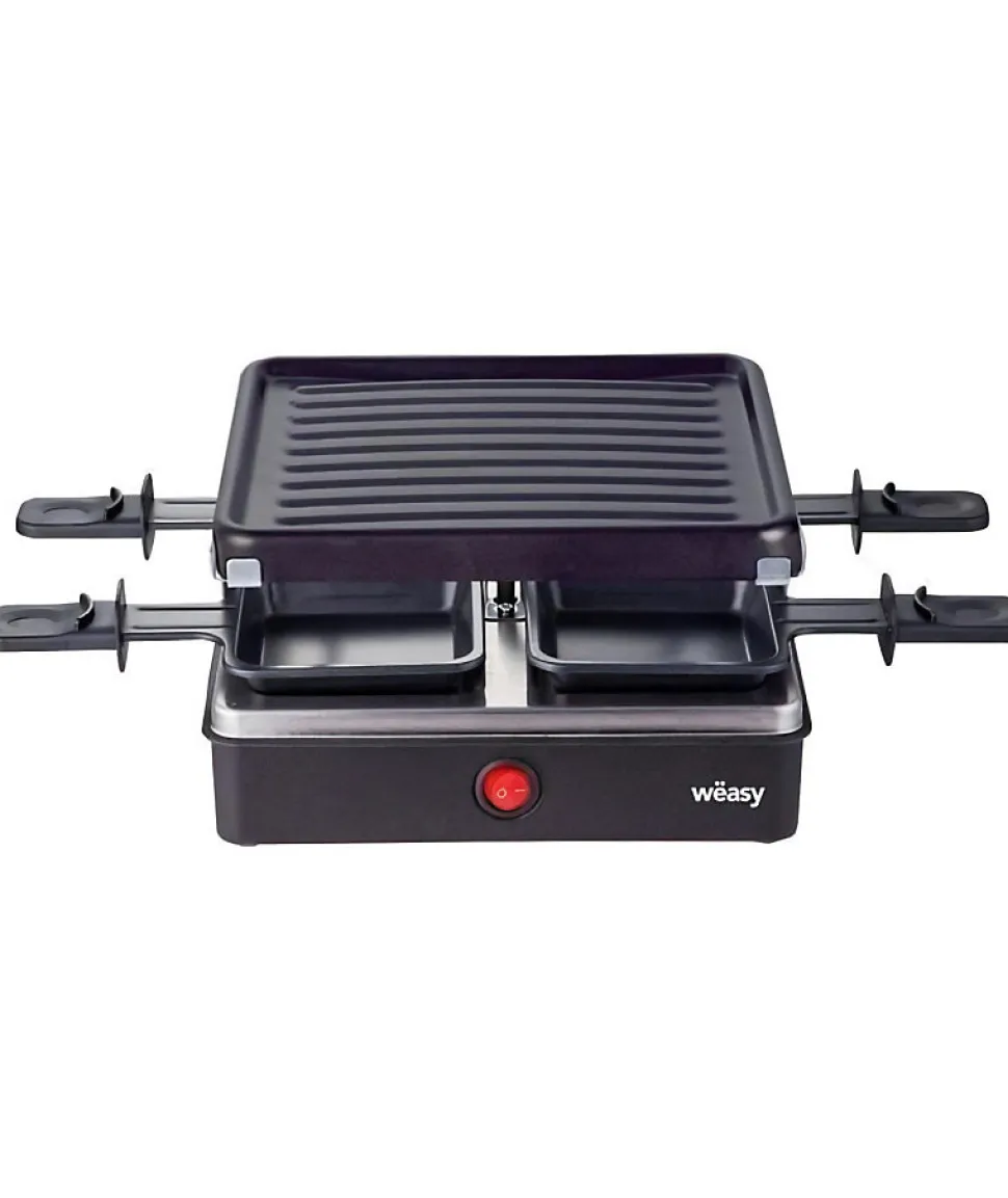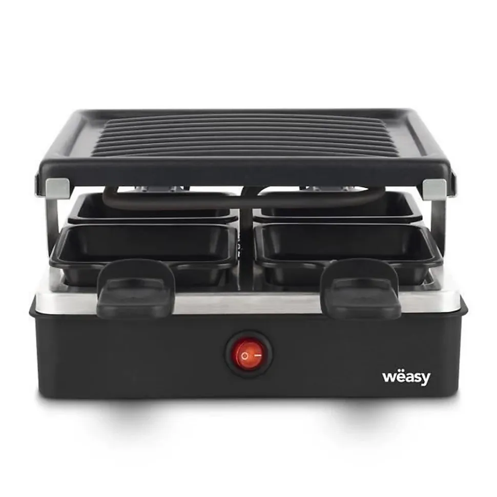 Partagez un repas avec vos proches en toute convivialité avec LUGA40 de Wëasy. Doté d’une puissance de 600 watts, cet appareil à raclette & grill est adapté pour 4 personnes. Sa plaque grill amovible vous permet de faire revenir toutes sortes de légumes, viandes, œufs… en accompagnement de votre raclette ou pour toute autre occasion. Un interrupteur avec témoin lumineux indique lorsque la machine est allumée.