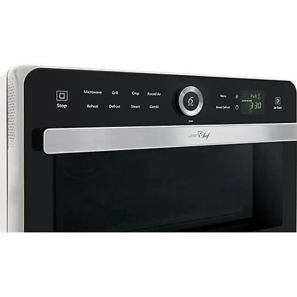 Micro-ondes posable, JET CHEF, Combiné, Blanc, Porte abattante repose-plat, 33 L, Electronique, Cavité Inox, Plateau 36cm, Débrayable, 8 niveaux de puissance, Puissance micro-ondes: 1000 W, Puissance gril: 1200 W, Puissance chaleur pulsée: 1500 W, Emission d’ondes 3D-system, 6ème Sens, Cuisson CRISP, Cuisson VAPEUR, Dé