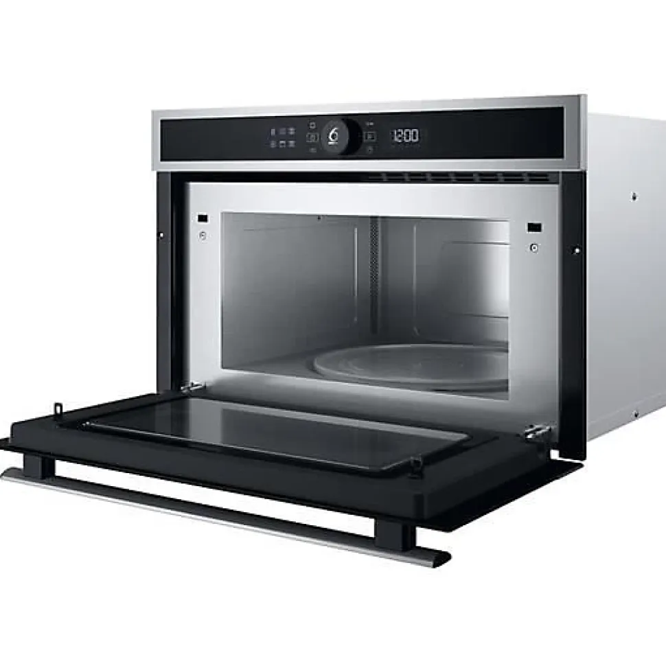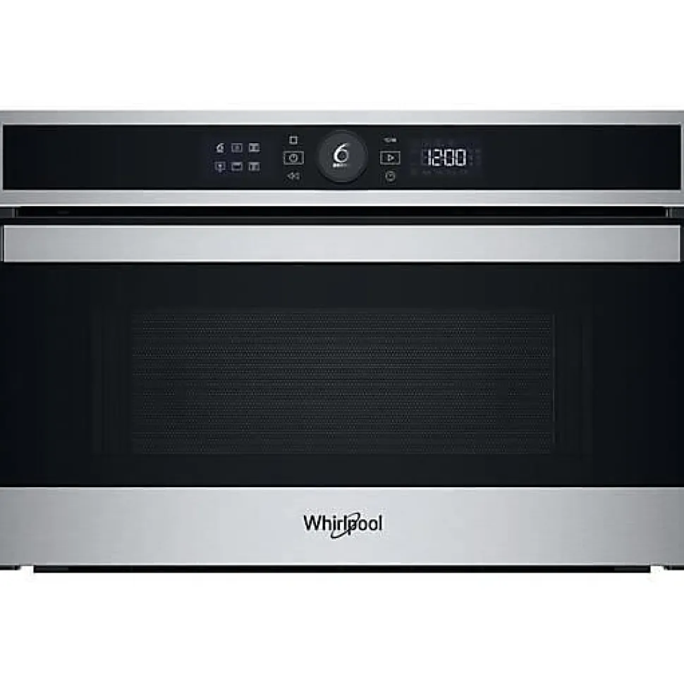 Micro-ondes combiné encastrable Whirlpool WMD4I4MXF 31 L en inox, avec fonction Crisp, grill quartz 800 W, technologie 6th Sense, JetDefrost et Jet Start pour une cuisson rapide et uniforme; auto-nettoyage par hydrolyse et intégration facile grâce à la ventilation frontale.