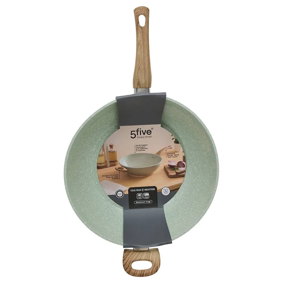 Wok 32cm en aluminium forgéPRATIQUE : Wok vert 32cm, antiadhésif pour une cuisson saine et rapide, idéal pour tous types de plats sautés et recettes quotidiennes.FACILE : Nettoyage rapide, matériaux robustes et résistants pour un usage quotidien.ERGONOMIQUE : Doubles poignées pour une meilleure prise en main et manipulation sécurisée.MULTI-USAGE : Convient pour plats sautés, légumes ou viandes, assurant cuisson homogène et pratique pour toute cuisine.5FIVE SIMPLY SMART : C’est prouvé, une maison bien rangée c’est la garantie d’un esprit léger. 5five propose des solutions intelligentes pour organiser et aménager chaque pièce de la maison, afin de faciliter le quotidien !Contenu : 1 wokDimensions : L. 51.3 x P. 32.5 x H. 11.6 cmColoris : VertMarque : 5 five simply smart