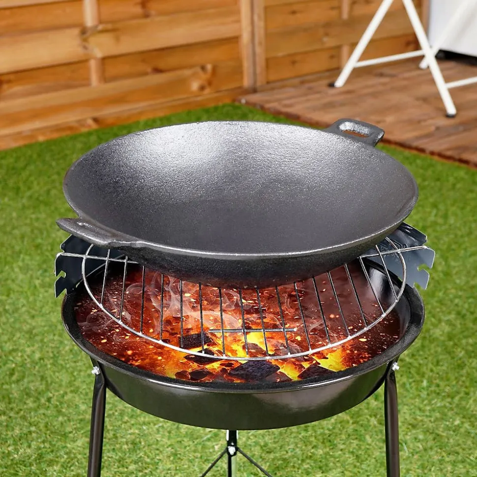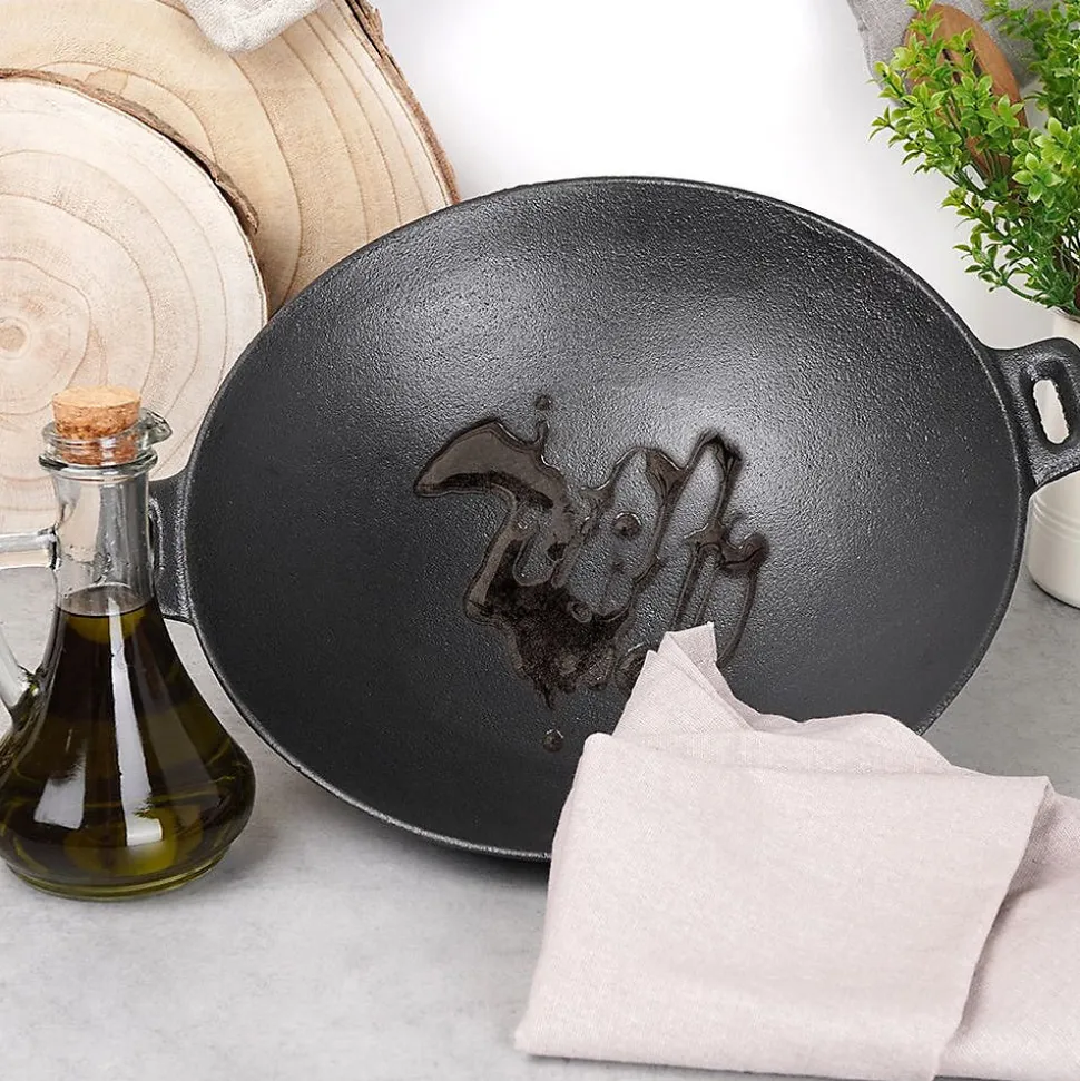 Découvrez la poêle-wok en fonte de 30 cm, idéale pour les cuisiniers à domicile qui veulent des plats savoureux et polyvalents. Conçue pour saisir et cuisiner sur tous les types de feux et au four, elle offre une cuisson homogène et une chaleur qui se maintient longtemps. Caractéristiques Matériau: fonte robuste pour une répartition uniforme de la chaleur et une excellente tenue de température. Dimensions: diamètre 30 cm et hauteur 8 cm pour une grande capacité de cuisson. Polyvalence et compatibilité: parfaite pour frire, rôtir et cuisiner au four; utilisable directement sur le gril ou le feu; compatible avec gaz, électrique, céramique, halogène et induction. Manipulation: équipée de deux poignées pratiques pour transporter et servir facilement; il est recommandé d’utiliser des gants de protection lors du déplacement. Entretien: durable mais non compatible lave-vaisselle; après chaque utilisation, nettoyer, essuyer et natuellement huiler pour préserver le culottage. Origine: produit original de la marque tchèque Orion, fabriqué selon les normes européennes. AvantagesLa fonte retient et distribue la chaleur de manière homogène, permettant une cuisson rapide et des plats uniformes avec une belle coloration. Grâce à sa masse, elle reste chaude plus longtemps, ce qui facilite les cuissons longues et le service à table.Sa polyvalence vous accompagne dans de nombreuses recettes: viande, légumes, pommes de terre et plats familiaux peuvent être préparés sur le feu, au four ou directement sur le gril, pour des saveurs riches et authentiques. Sa conception robuste assure une u unicité durable et une utilisation sur le long terme, avec un entretien simple et régulier.Produit fiable et conforme, Orion propose ici une solution durable et pratique pour tous les amoureux de la cuisine maison, fabriquée dans le respect des standards européens.